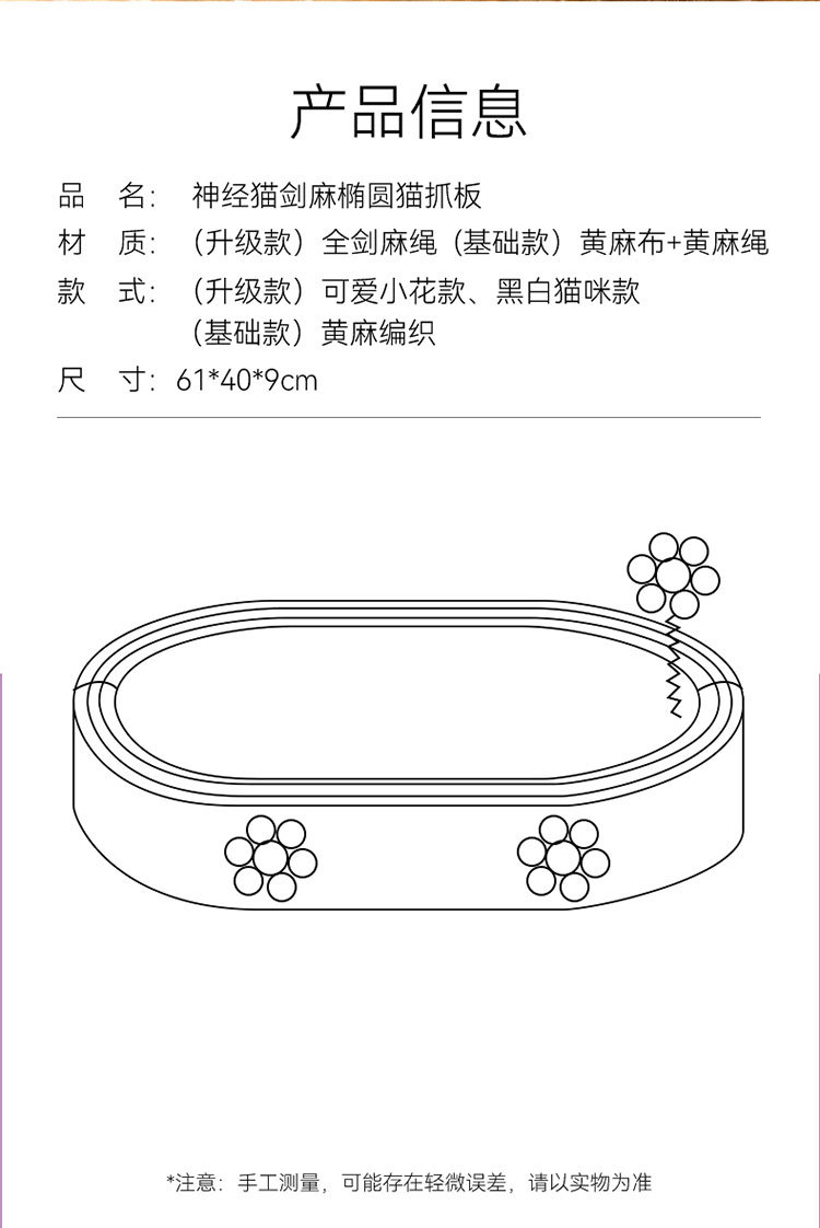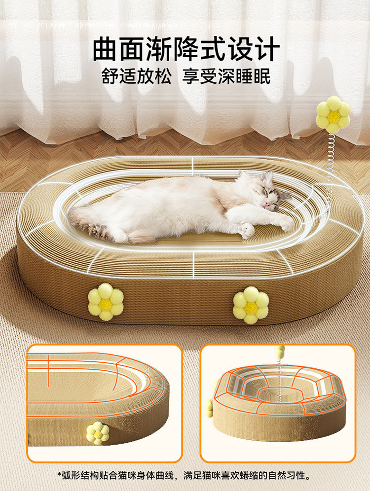 신경 고양이 사이 잘 타원형 고양이 스크래치 보드 내마모성 스크래치 방지 캐치 방지 고양이 장난감 놀이 및 수면 통합 대형 클로 그라인더
