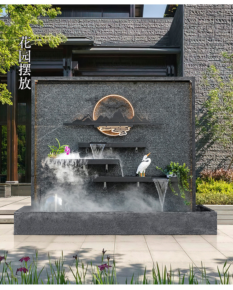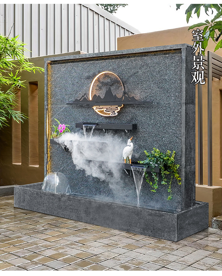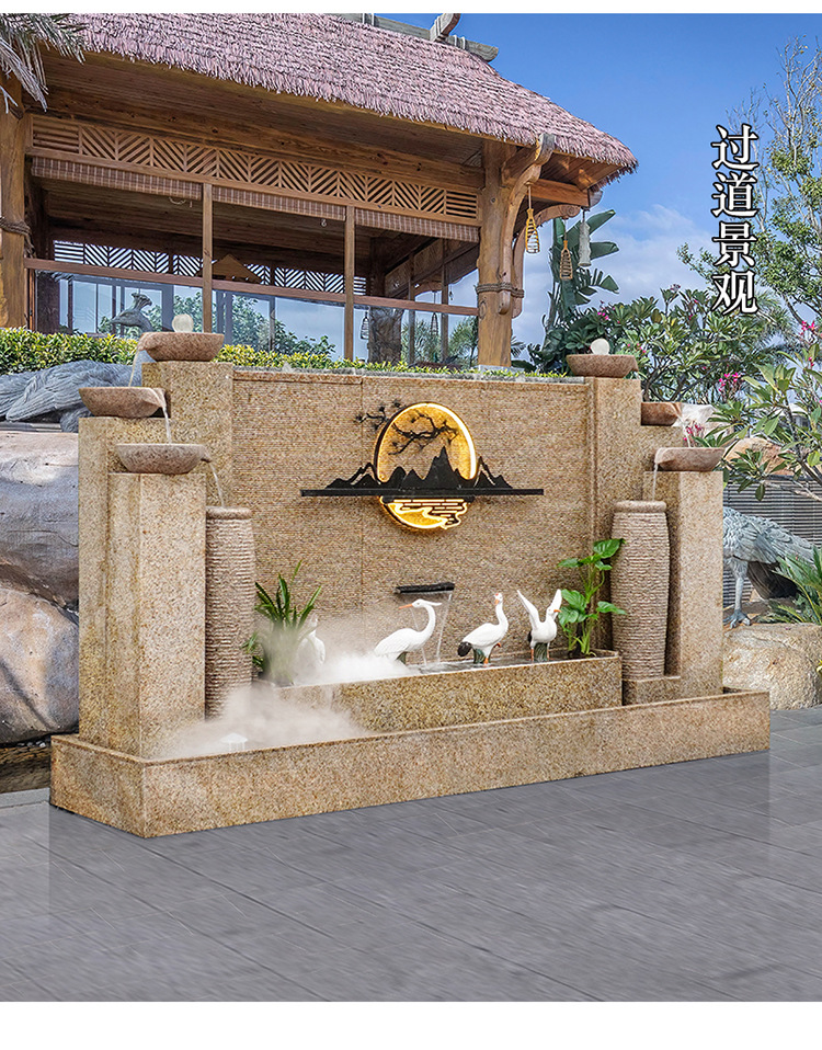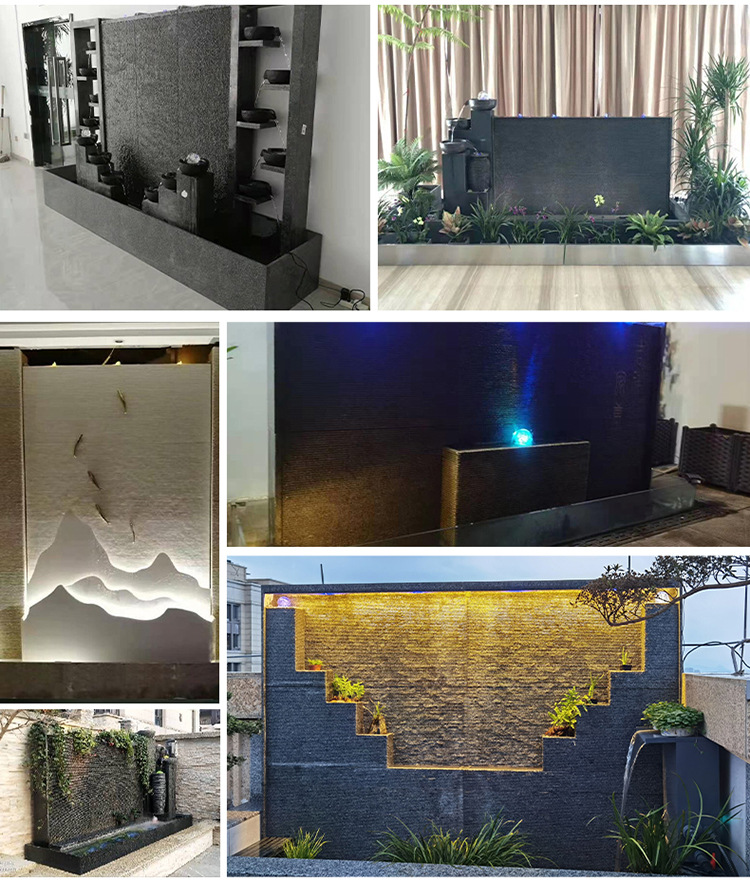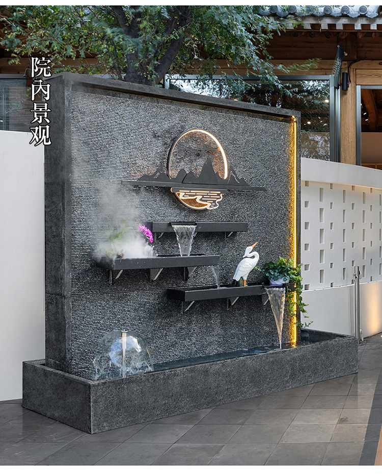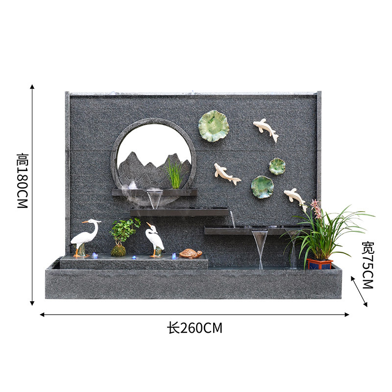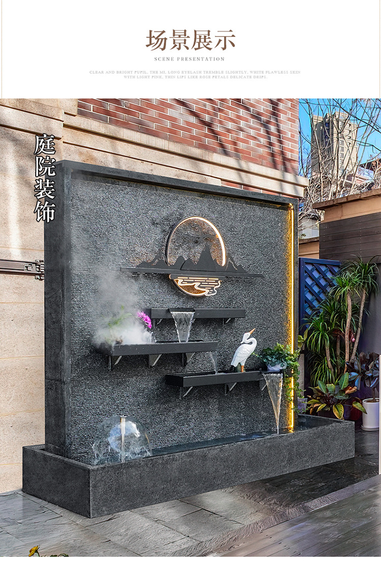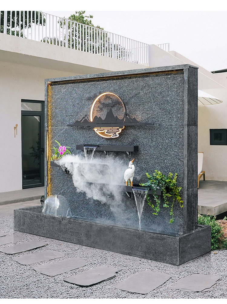 야외 안뜰 물 벽 그림자 벽 농촌 안뜰 스크린 완성 된 수경 물고기 연못 배경 벽 분수 물 시스템