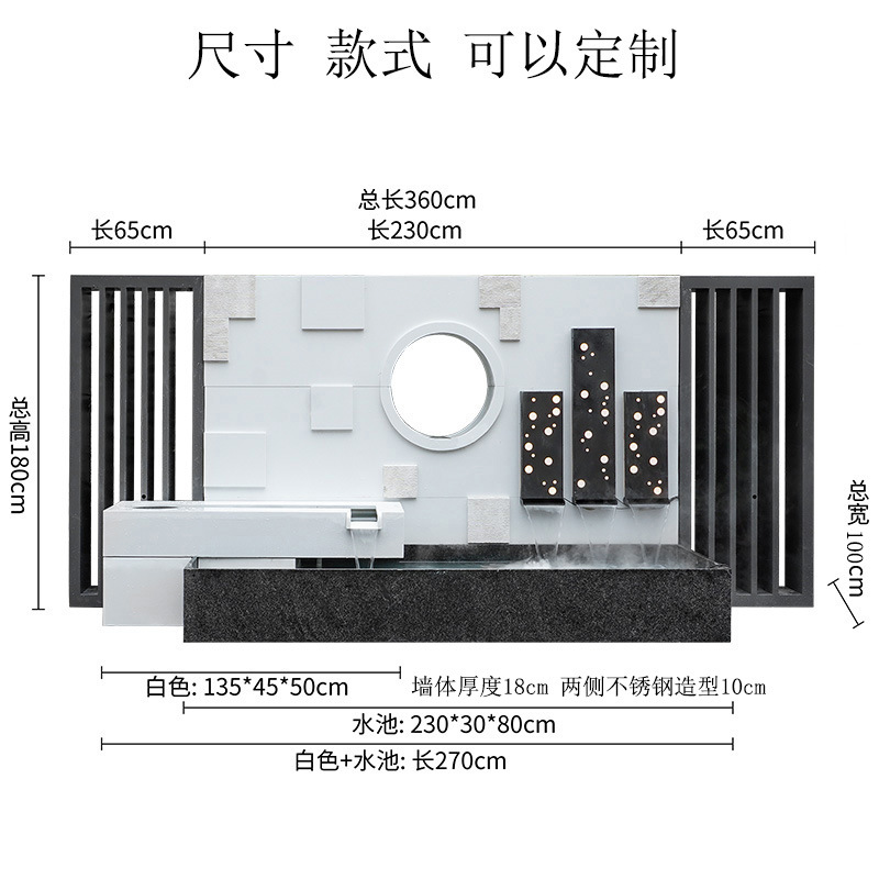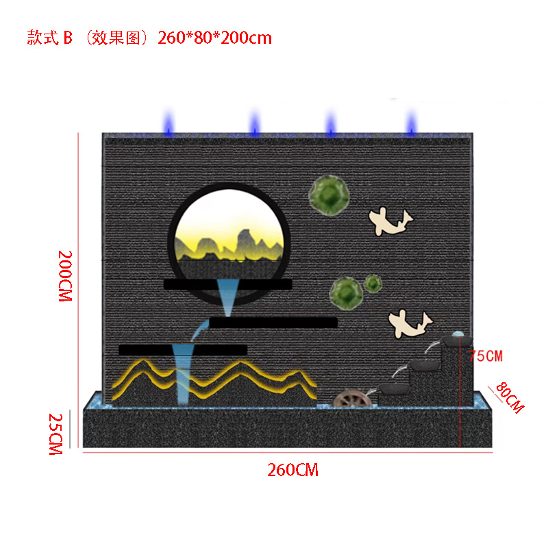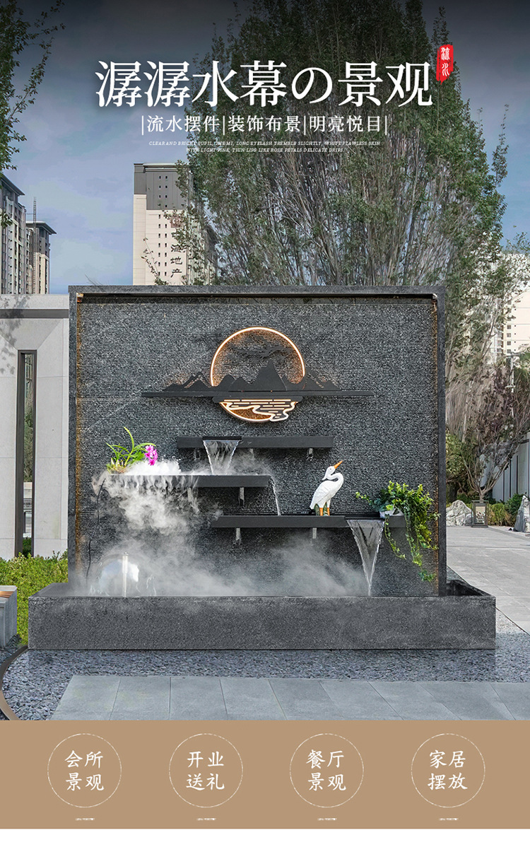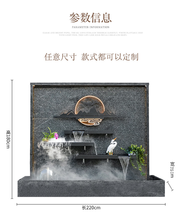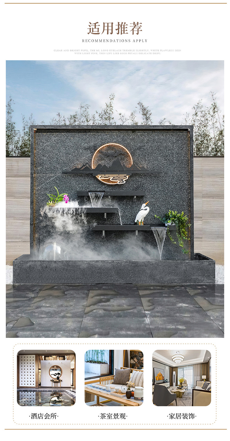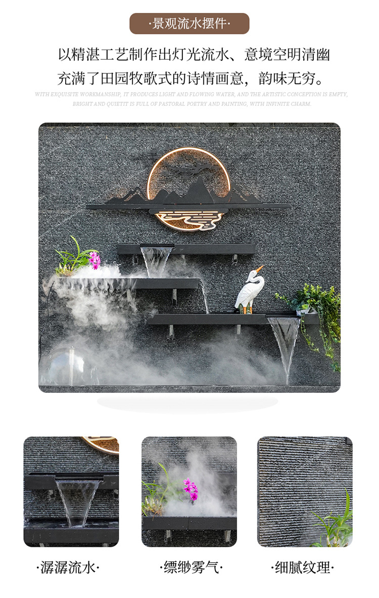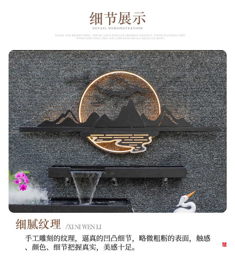 야외 안뜰 물 벽 그림자 벽 농촌 안뜰 스크린 완성 된 수경 물고기 연못 배경 벽 분수 물 시스템