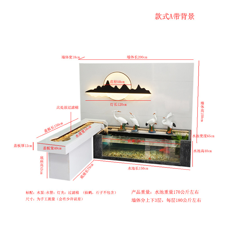 • 빛이 있는 녹석 이중 탱크 300*85*168