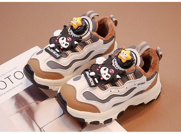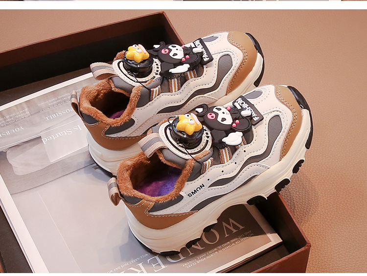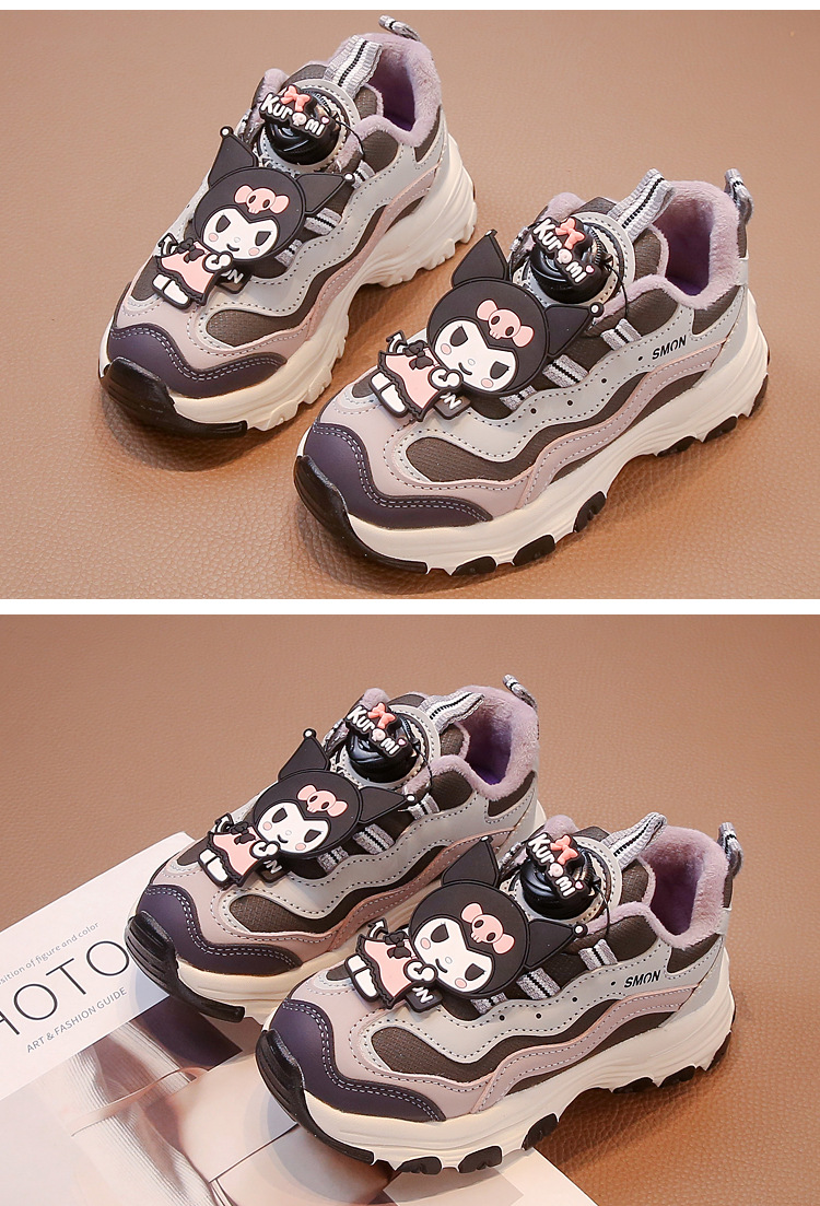 소녀 쿨로 미카 코튼 운동화 어린이 버튼 신발 따뜻한 러닝화 2024 겨울 새로운 미끄럼 올매치