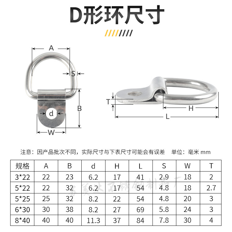 304 스테인레스 스틸 삼각형 링 D-링 스퀘어 링 고정 트럭 트레일러 로프 버클 후크 스트랩 박스 풀 링