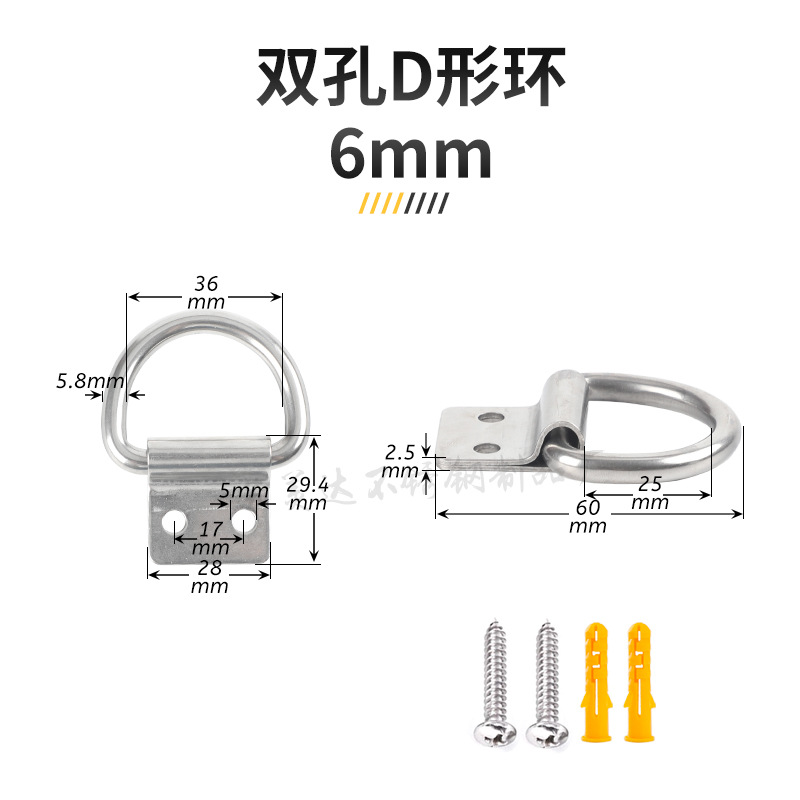• 이중 구멍 D형 링 6mm-2개 [셀프 태핑 나사 포함]