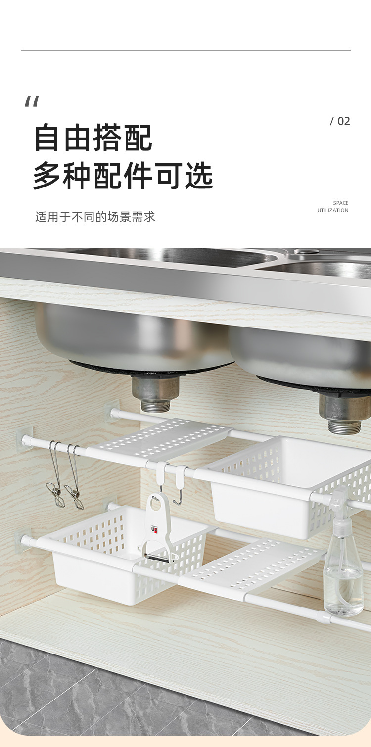 주방 보관 랙 스토리지 랙 텔레스코픽 캐비닛 레이어드 랙 파티션 가정용 낮은 싱크 내장 냄비 배열 선반스토어 가기