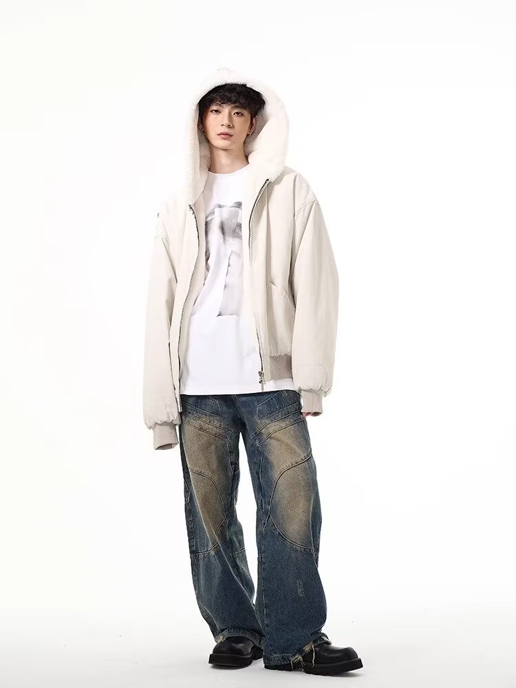 2024 아메리칸 스타일 빈티지 후드 코튼 재킷 남자의 겨울 유행 따뜻한 작업복 세탁 캔버스 재킷