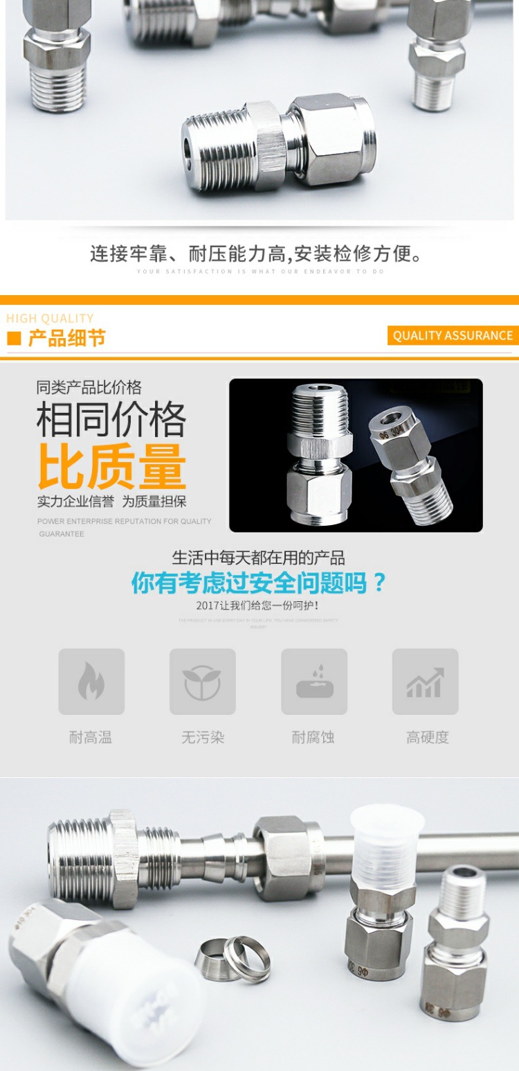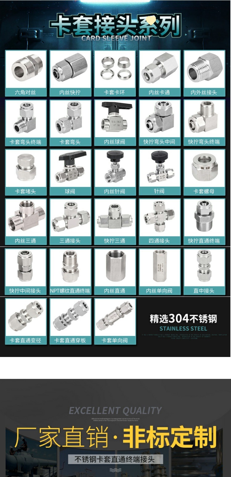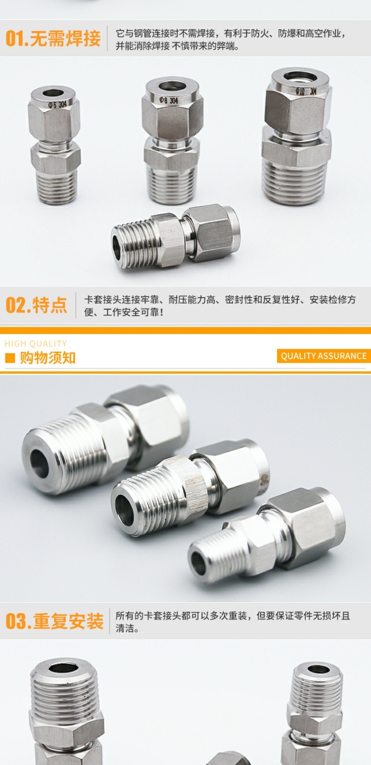 스테인레스 스틸 페룰 터미널 더블 카드 직선 연결 1/2/3/4 서브 카드 6/8/10/12/14/16mm 파이프 조인트