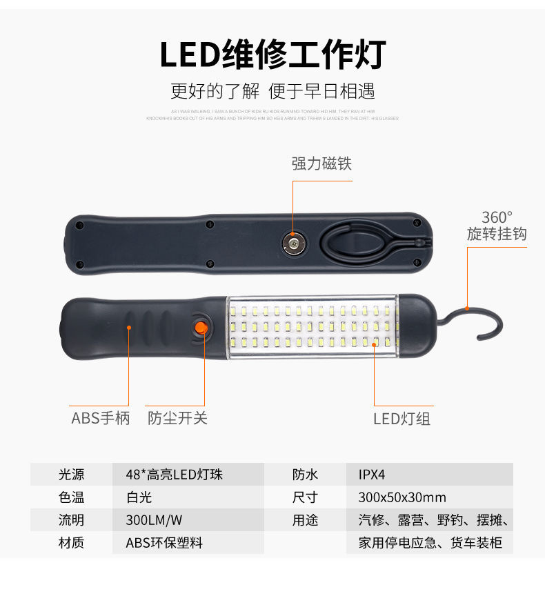 자동차 수리 야간 시장 조명 실속 작업 조명 충전 자동차 수리 라이트 자석 흡착 led 수리 비상 조명스토어 가기