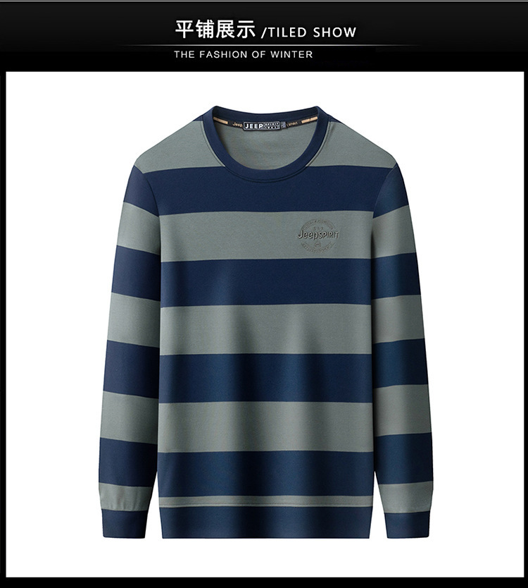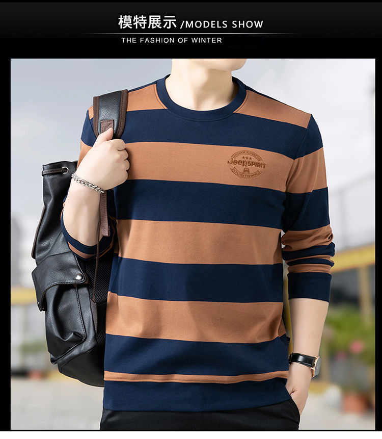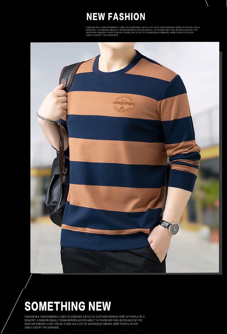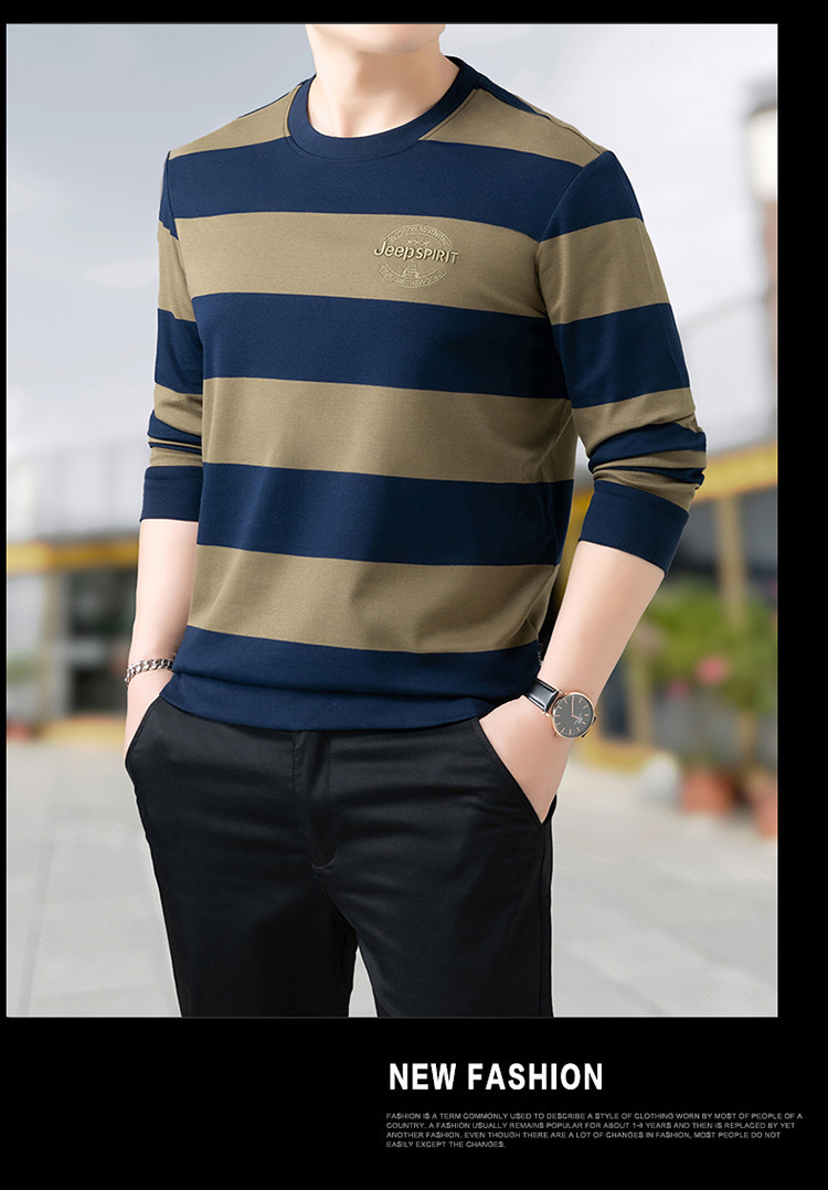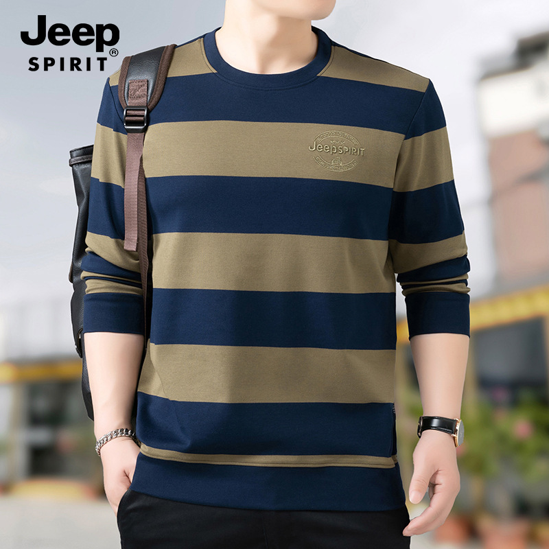 JEEP SPIRIT 스웨터 남성용 가을 긴팔 티셔츠 남성용 줄무늬 캐주얼 루즈 크루 넥 티셔츠 남성베이스 셔츠스토어 가기