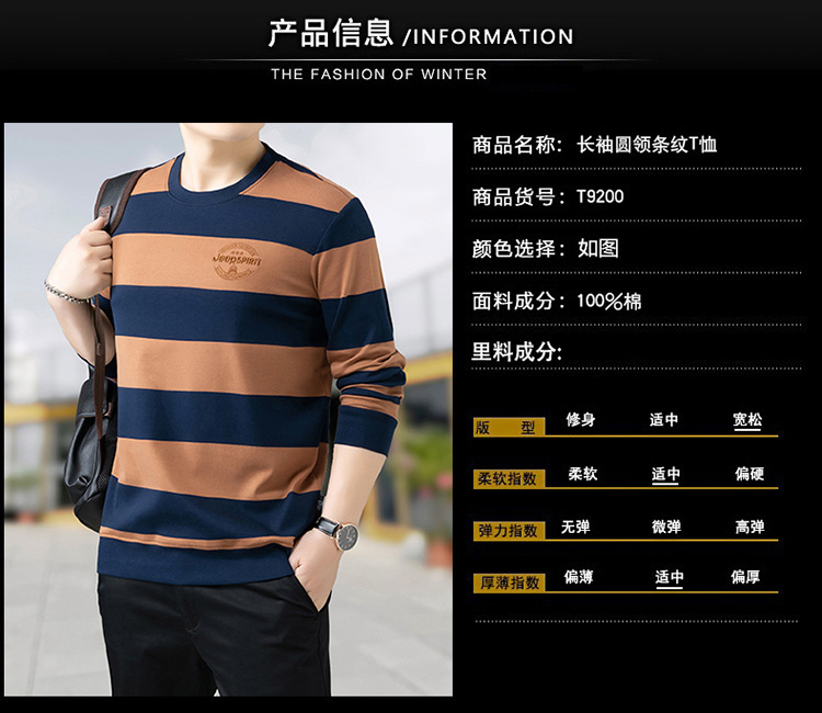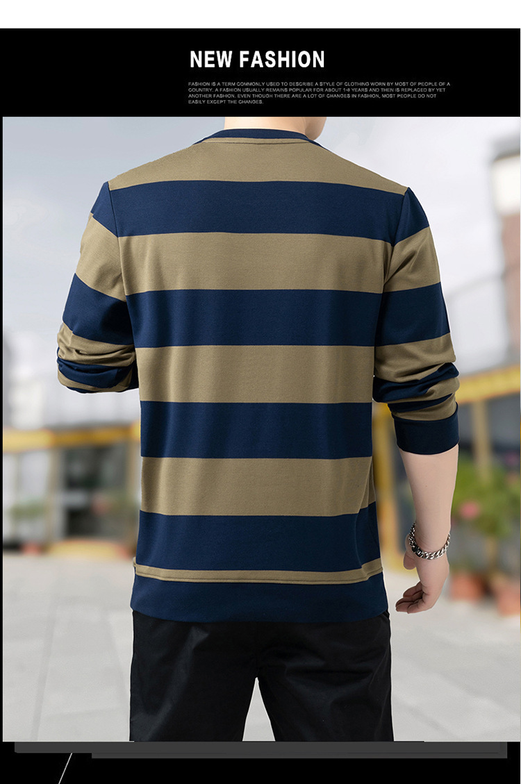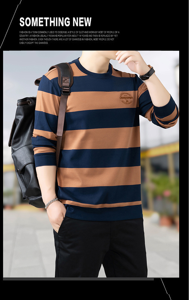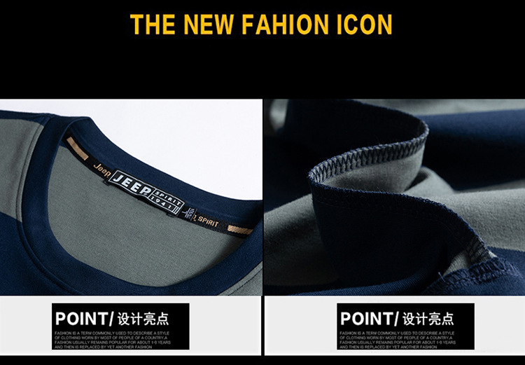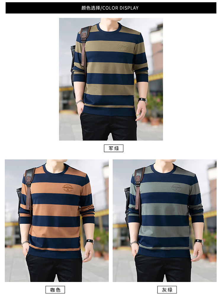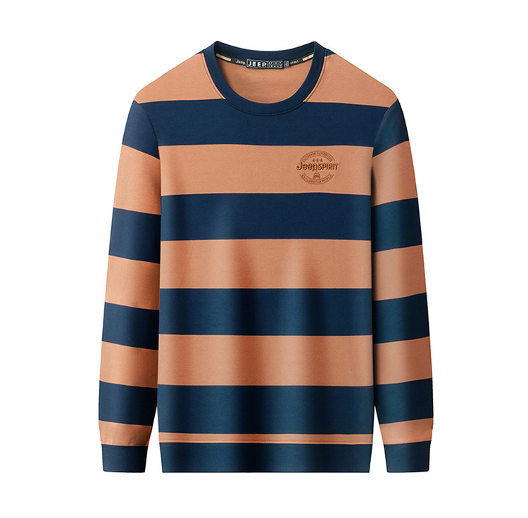 JEEP SPIRIT 스웨터 남성용 가을 긴팔 티셔츠 남성용 줄무늬 캐주얼 루즈 크루 넥 티셔츠 남성베이스 셔츠스토어 가기