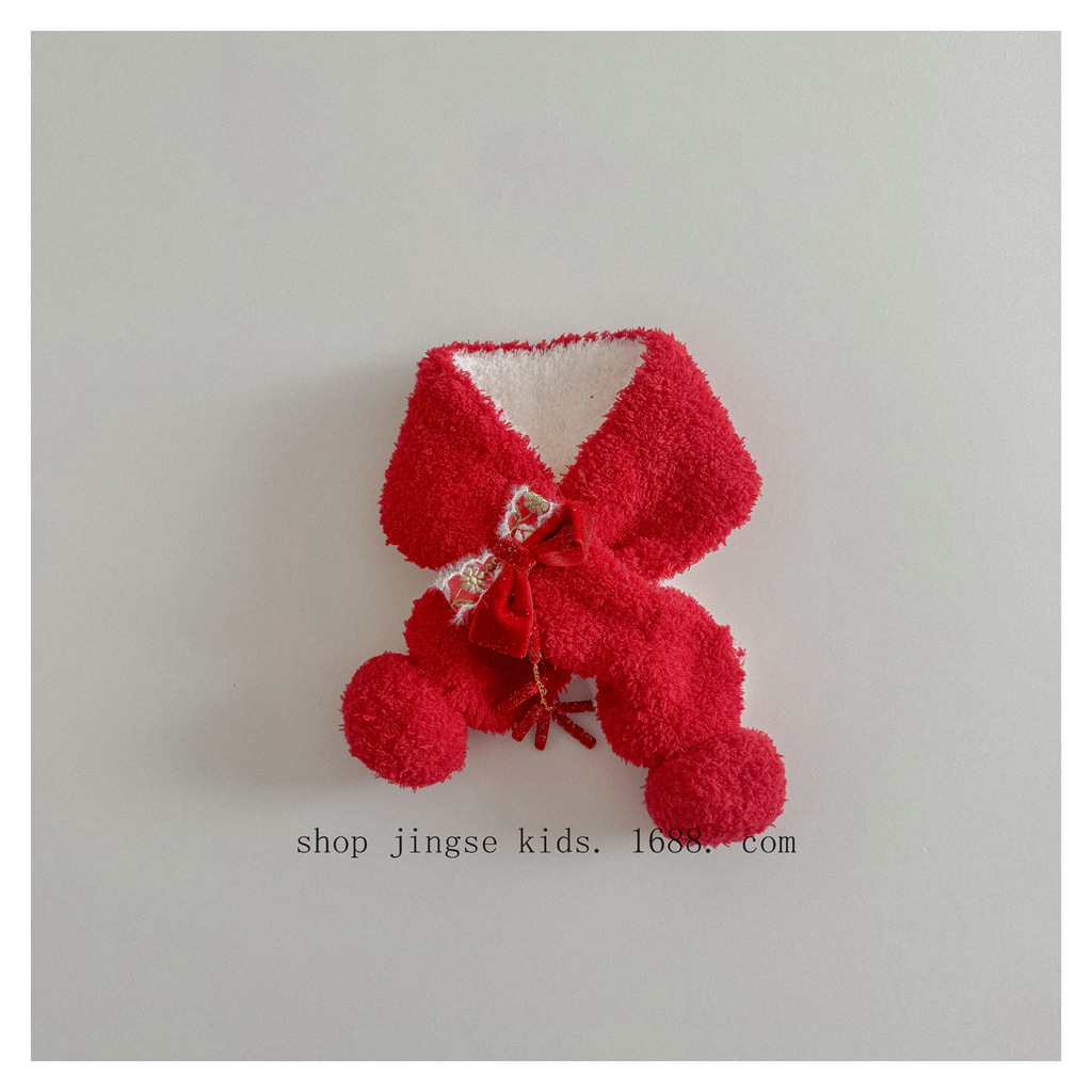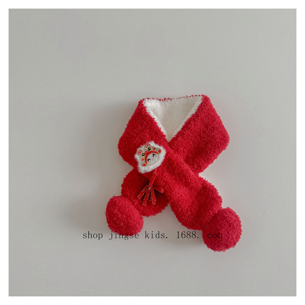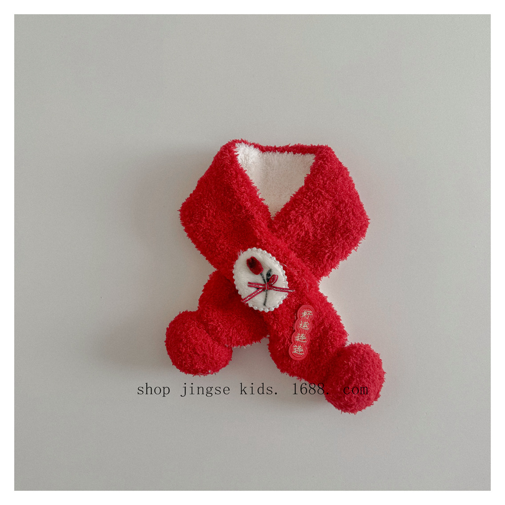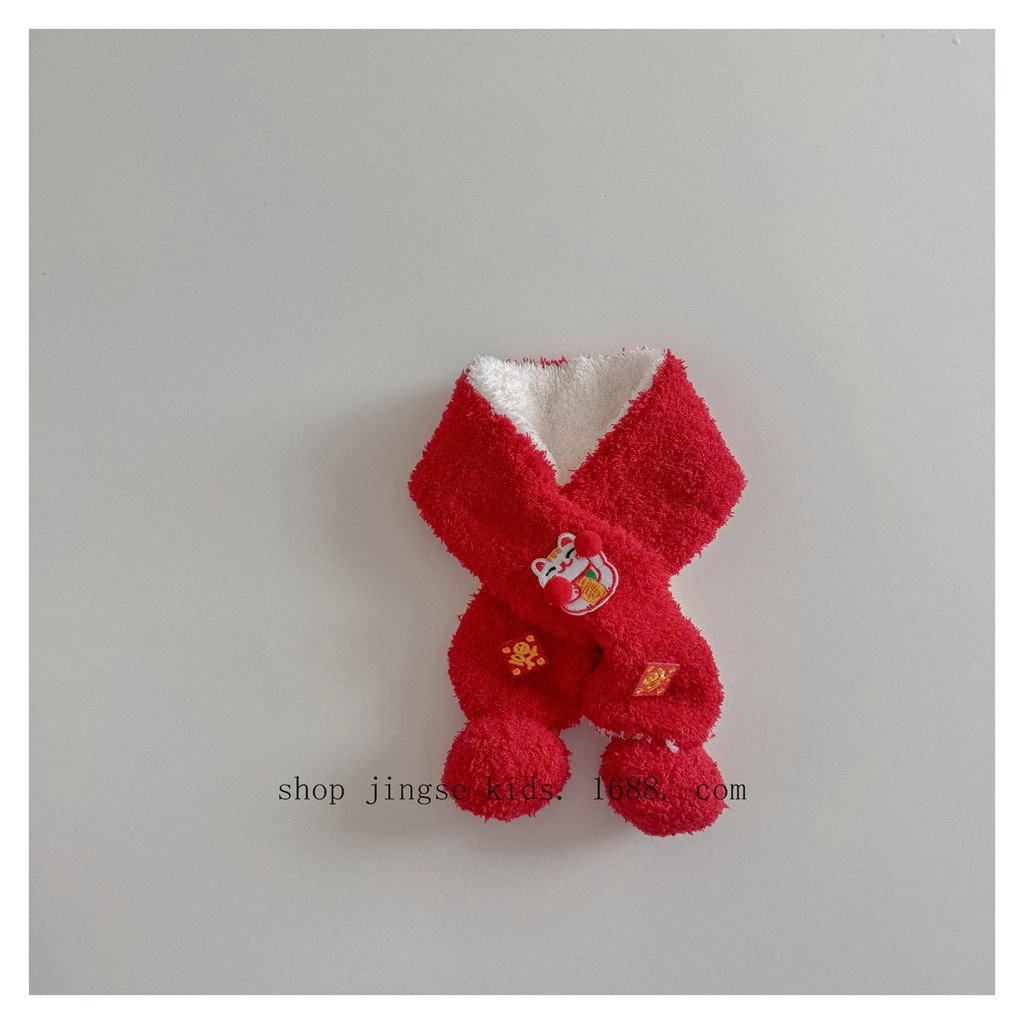 레드 해피 굿 럭 크로스 스카프 가을과 겨울 새로운 어린이 새해 스카프 국립 스타일 따뜻한 멜론 모자스토어 가기