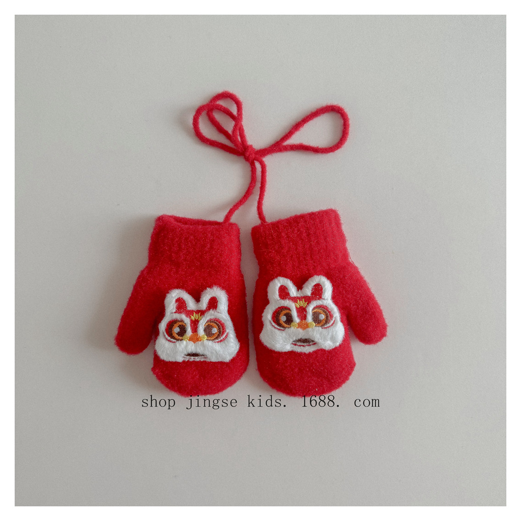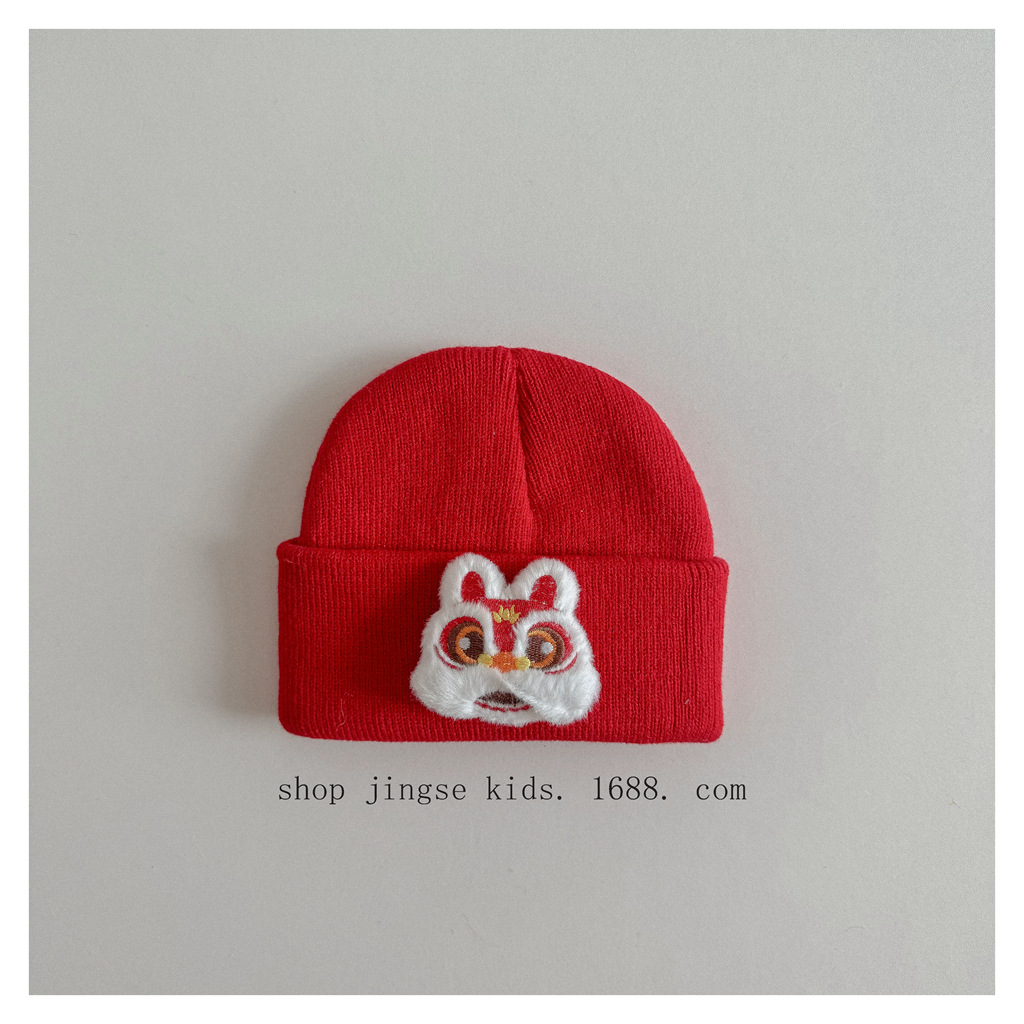 레드 해피 굿 럭 크로스 스카프 가을과 겨울 새로운 어린이 새해 스카프 국립 스타일 따뜻한 멜론 모자