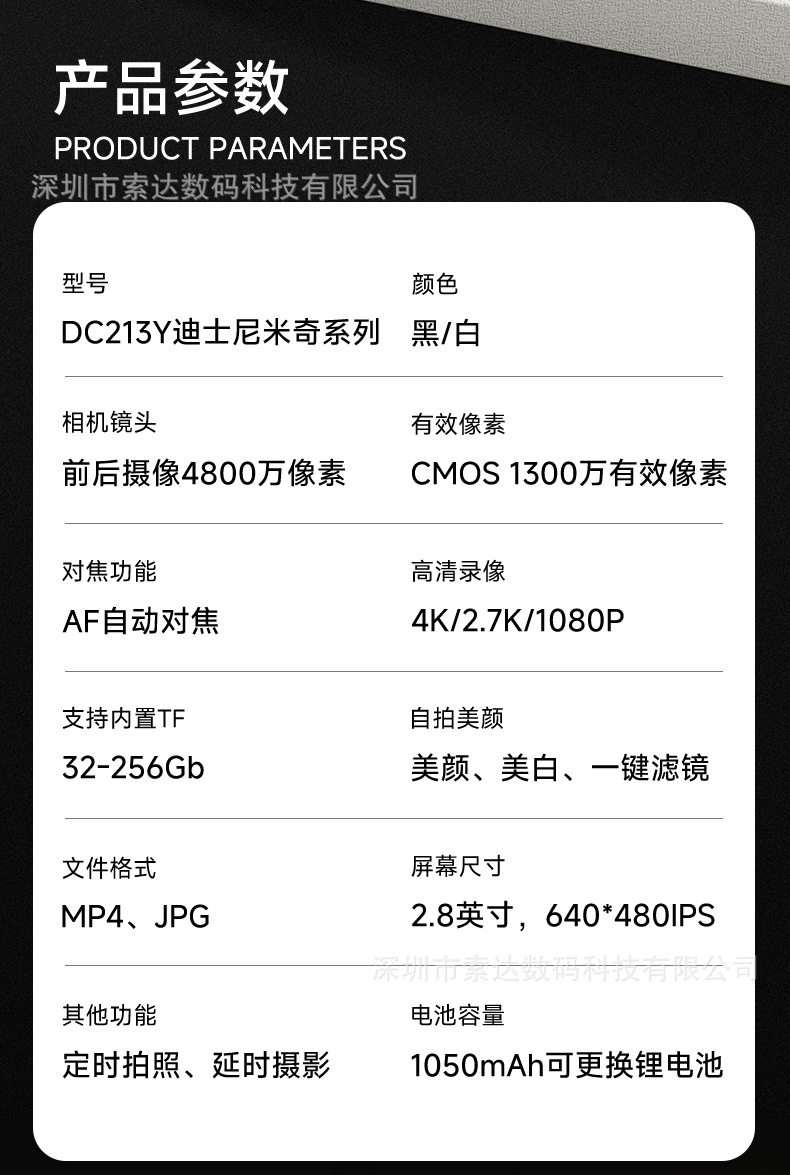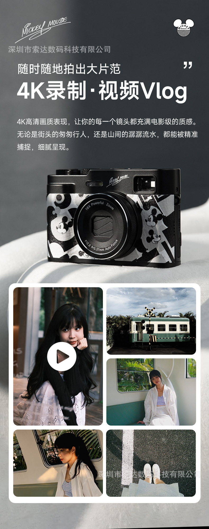 [송디안-미키 공동브랜드] 학생들을 위한 디지털 뷰티 카메라, 셀카 필터 카메라, 선물 미러리스 카메라