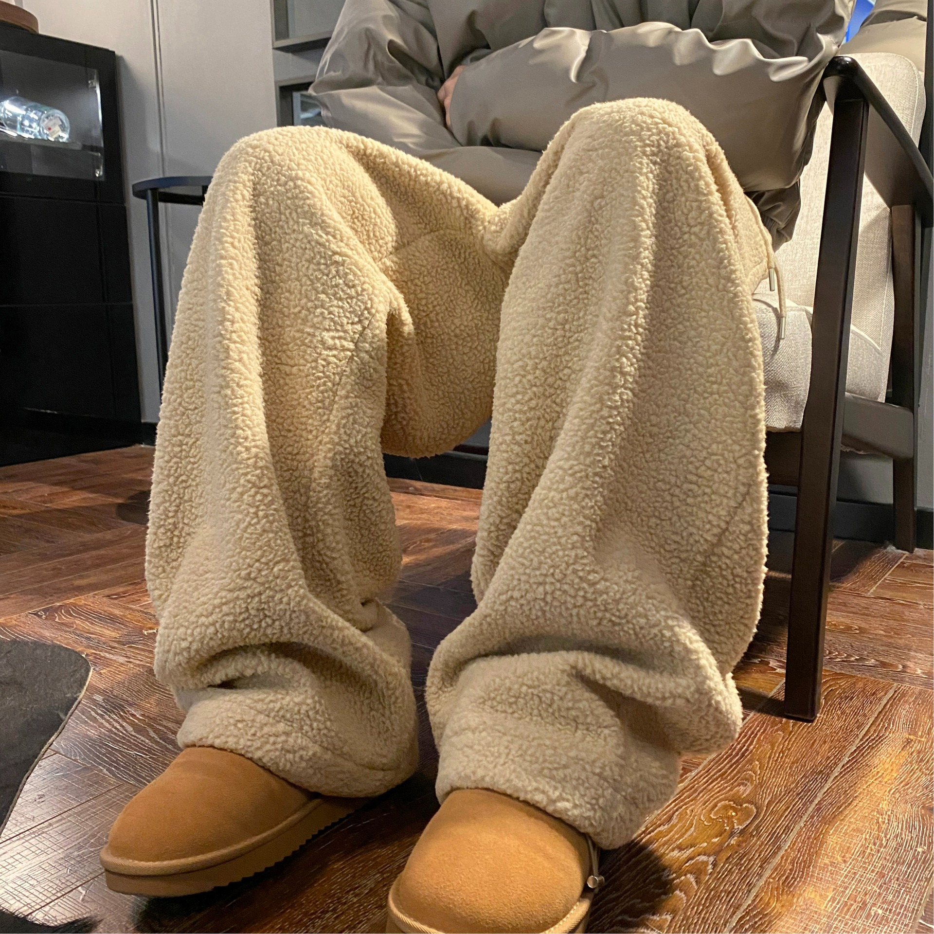 양털 바지 여성의 겨울 캐주얼 느슨한 따뜻한 캐주얼 카키 바지 여성의 가을과 겨울 2024 새로운스토어 가기