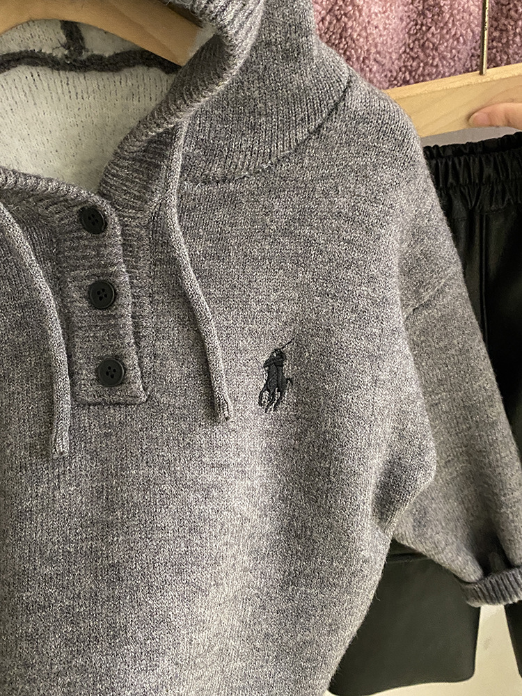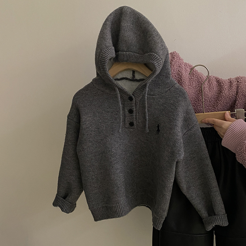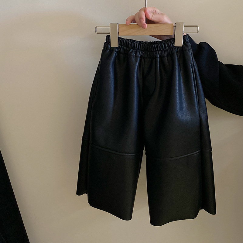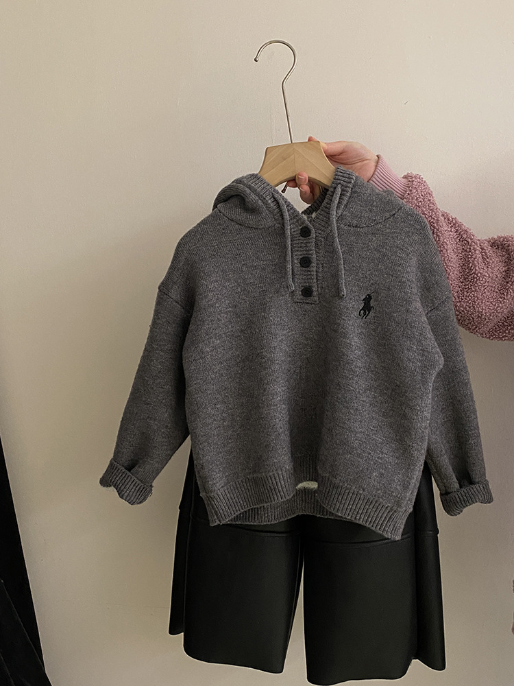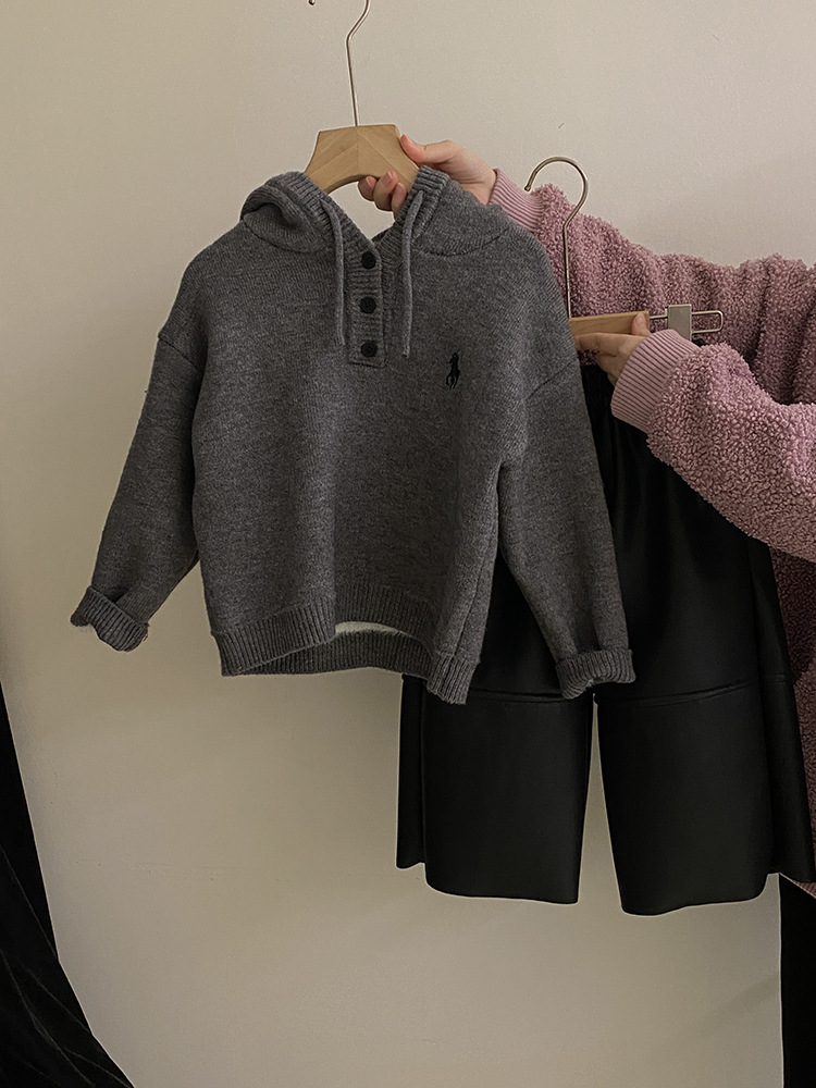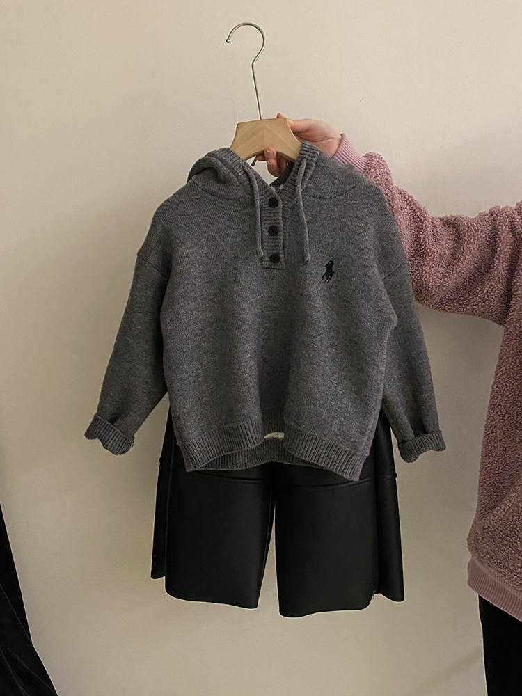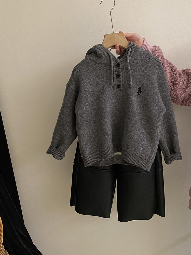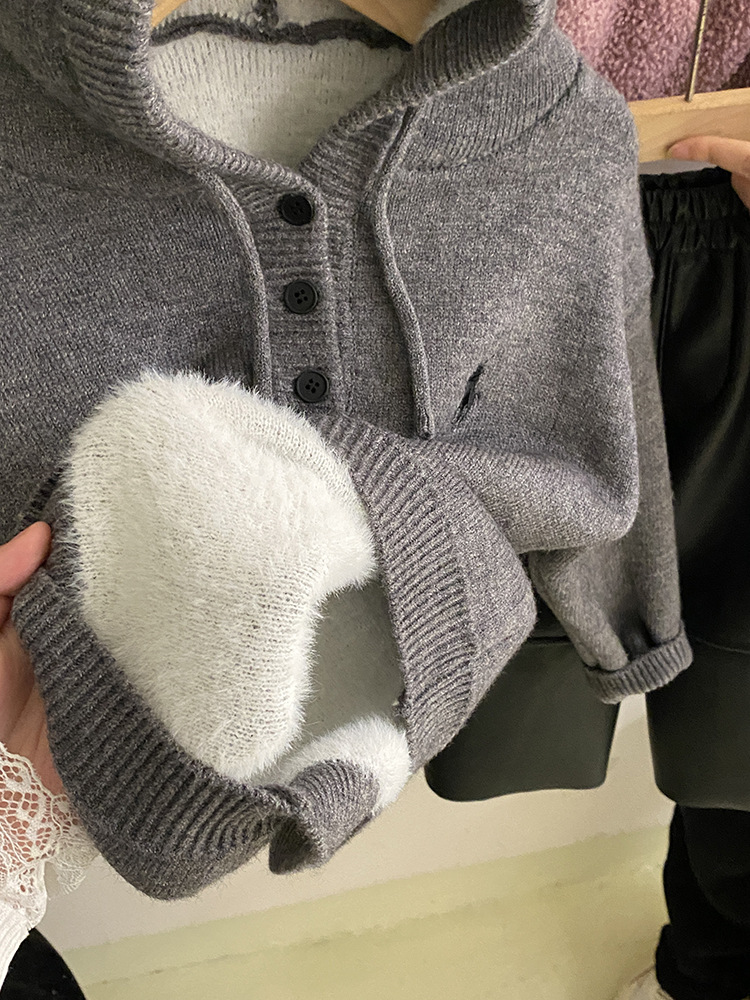 소녀 한국 스타일 세트 2024 가을/겨울 새로운 올 매치 후드 기모 니트 스웨터 세련된 기모 따뜻한 가죽 바지