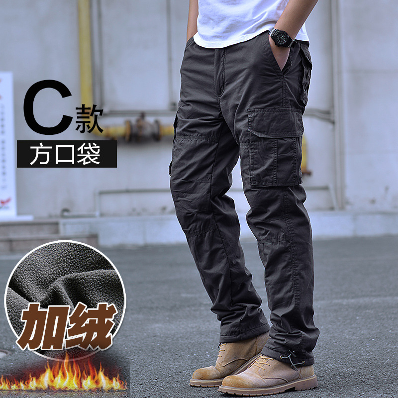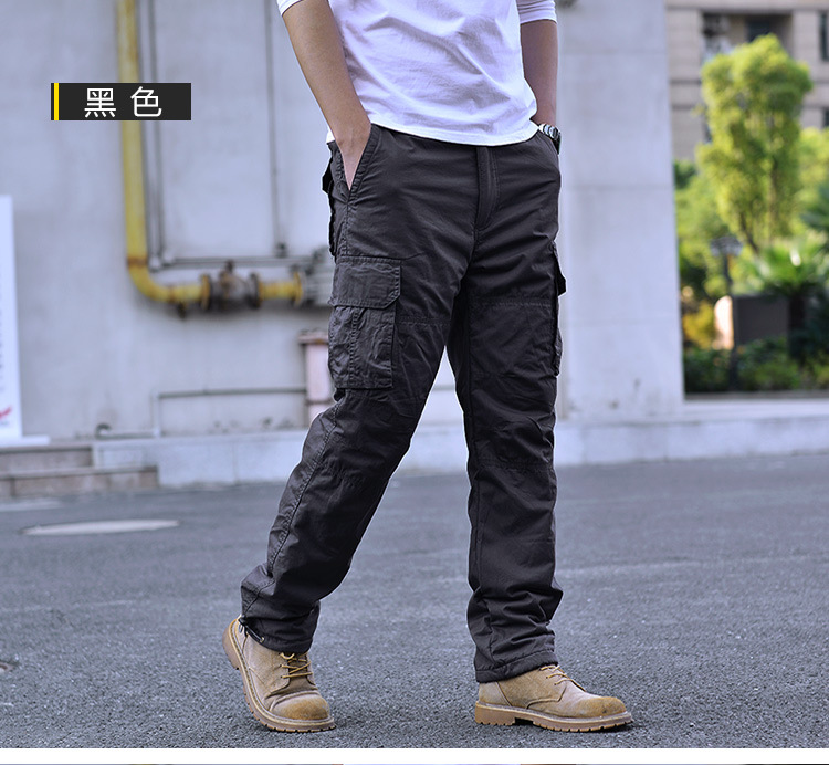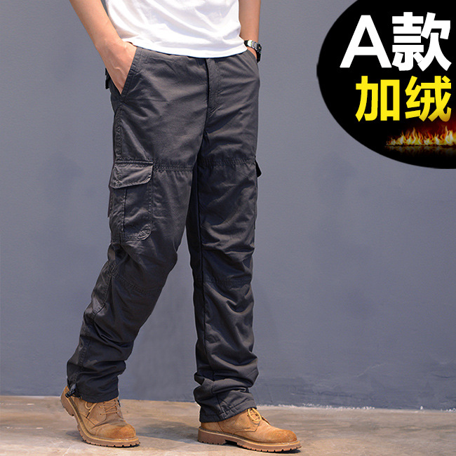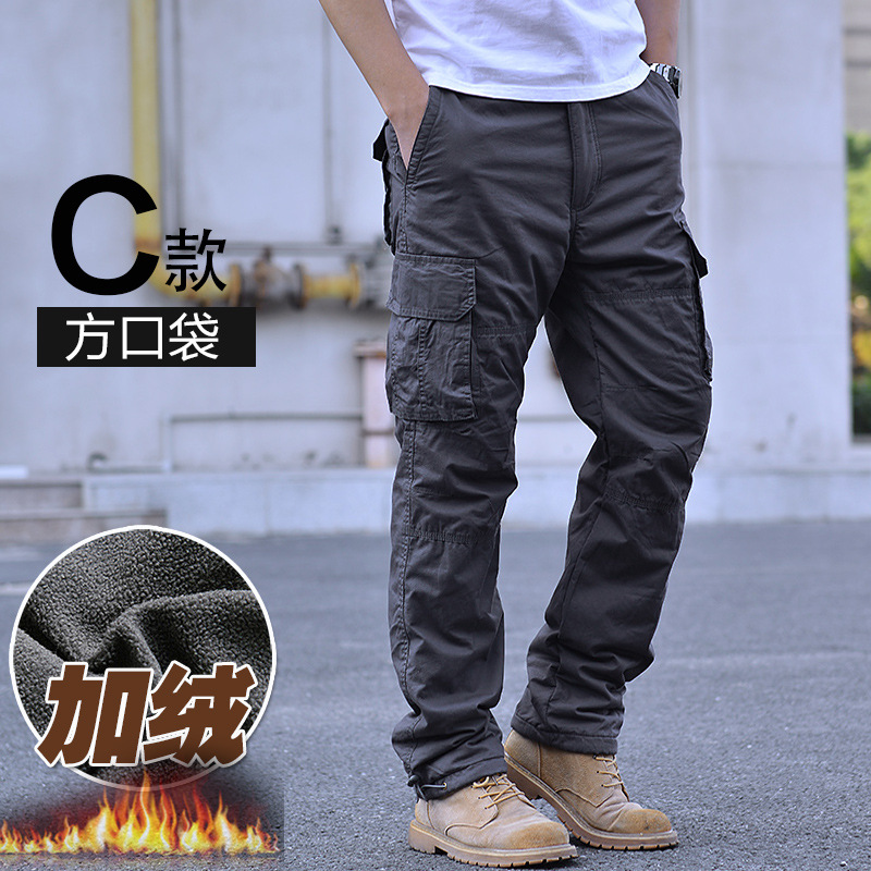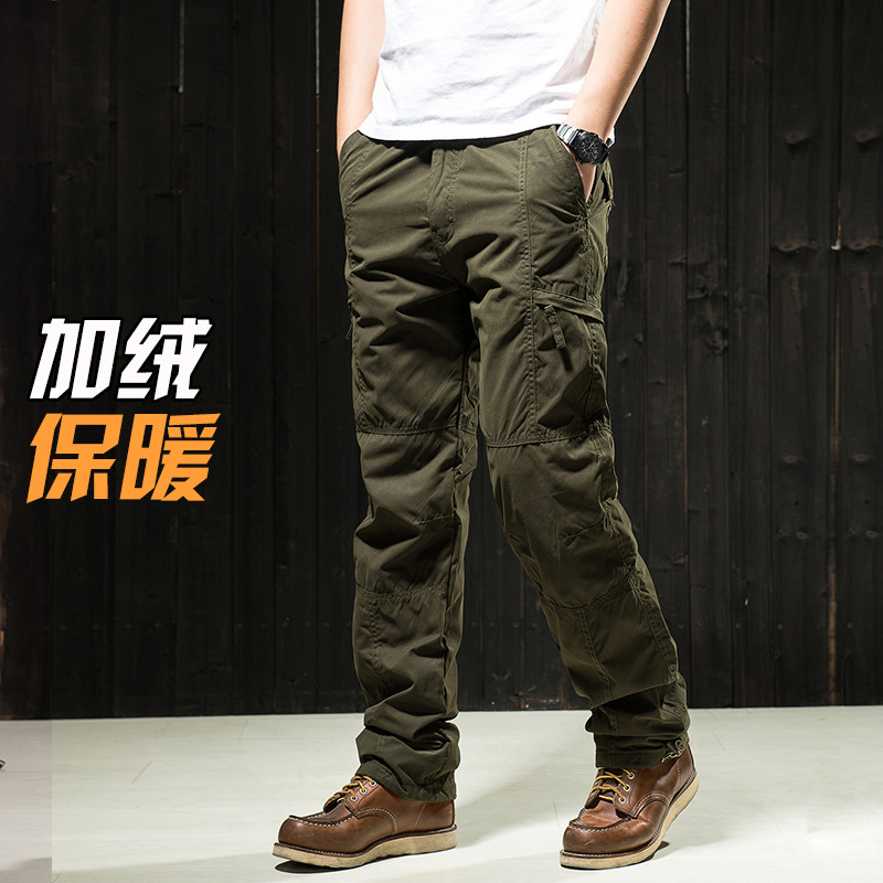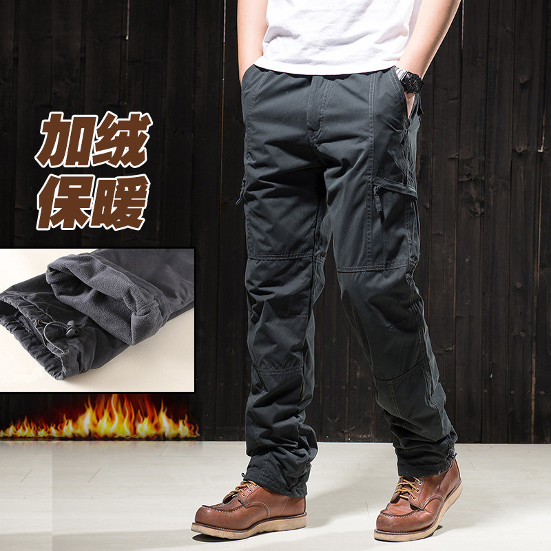 가을과 겨울 따뜻한 캐주얼 바지 면화 바지 야외 착용 기모 바지 스트레이트 느슨한 남성용 겨울 바지