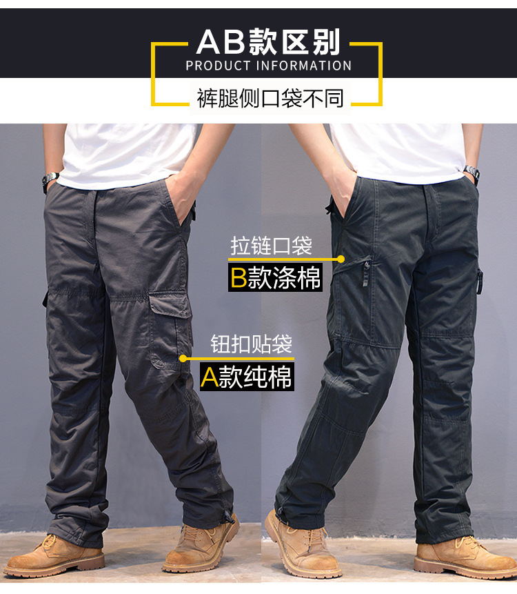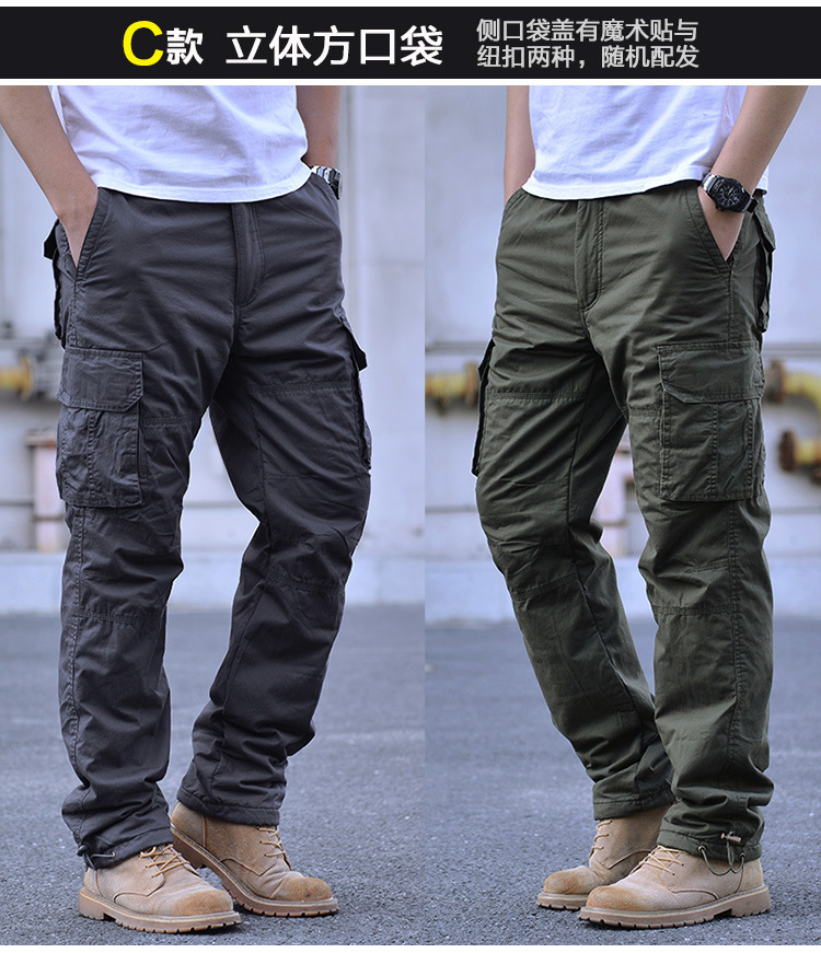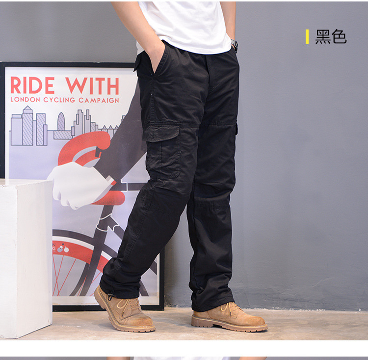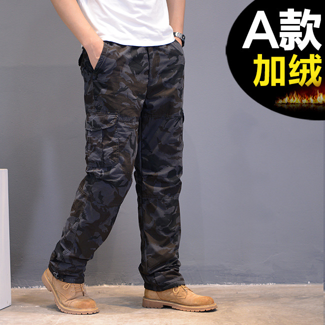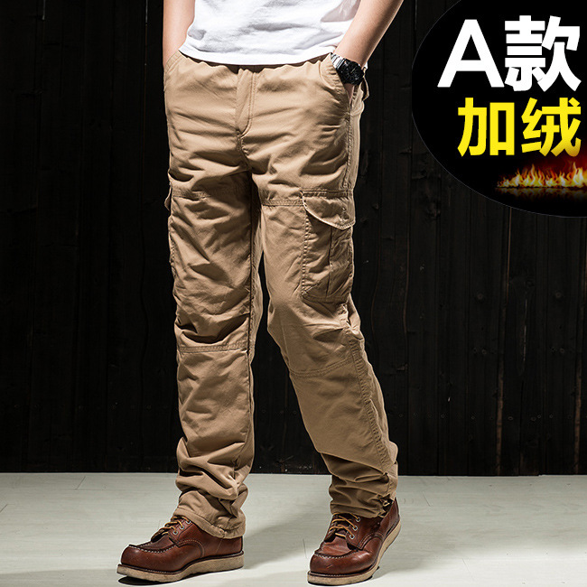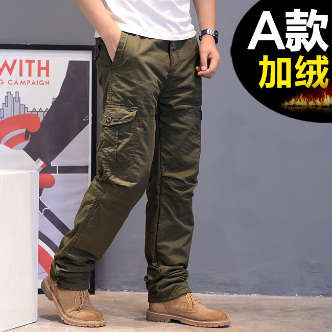 가을과 겨울 따뜻한 캐주얼 바지 면화 바지 야외 착용 기모 바지 스트레이트 느슨한 남성용 겨울 바지