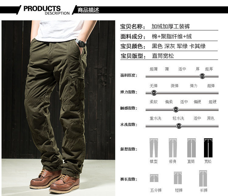 가을과 겨울 따뜻한 캐주얼 바지 면화 바지 야외 착용 기모 바지 스트레이트 느슨한 남성용 겨울 바지스토어 가기
