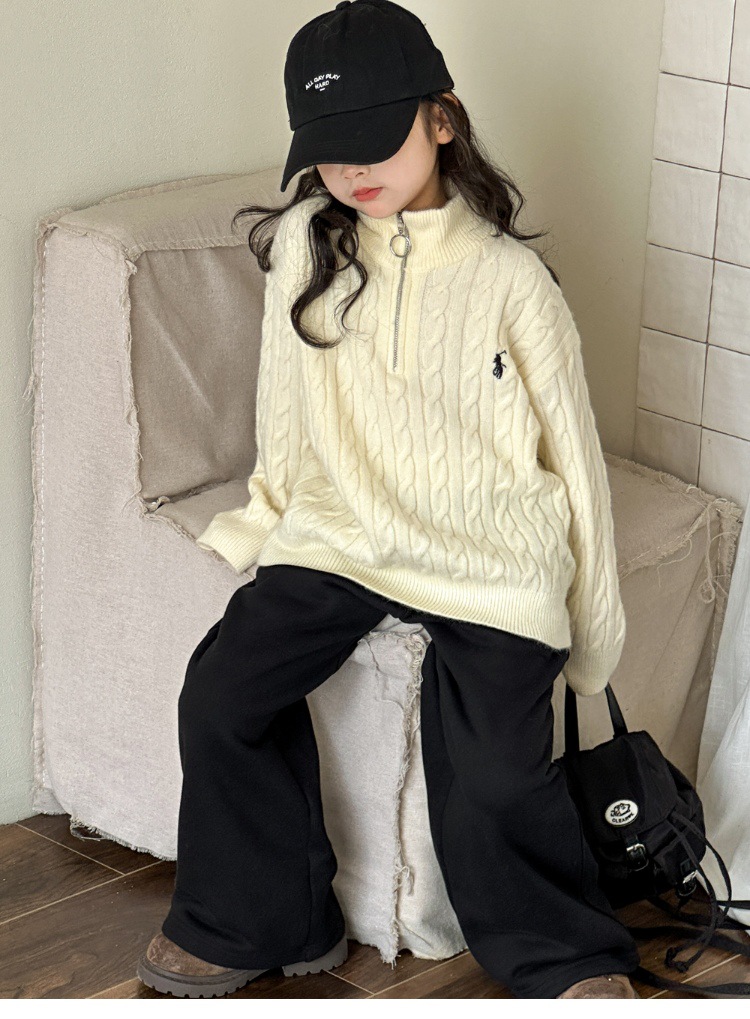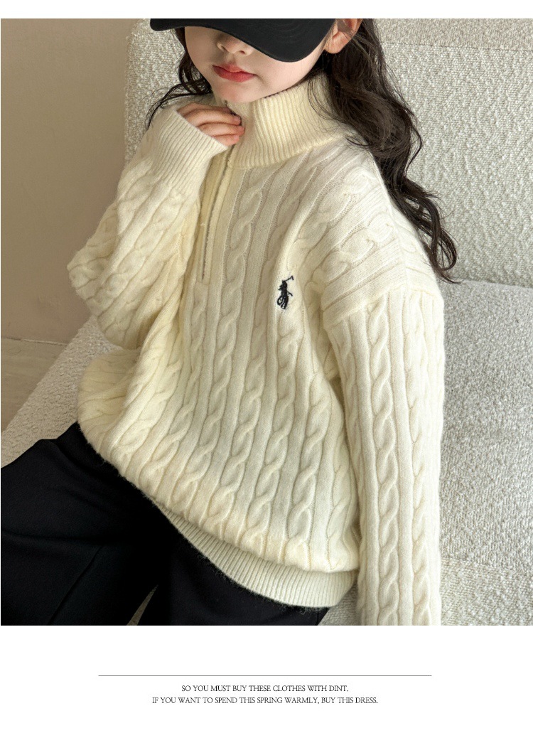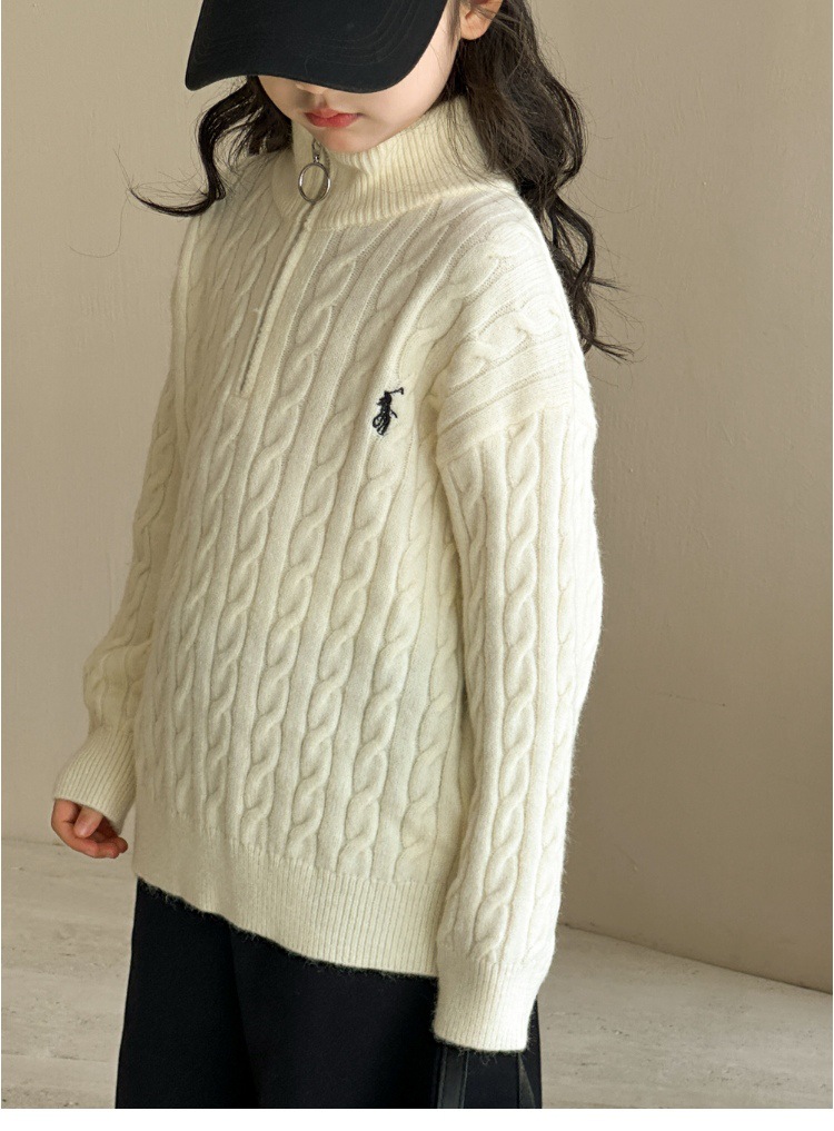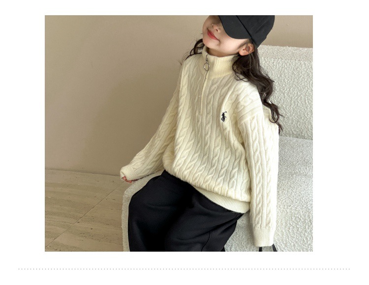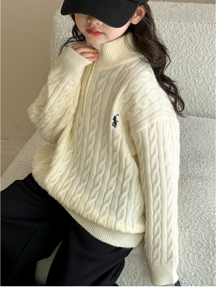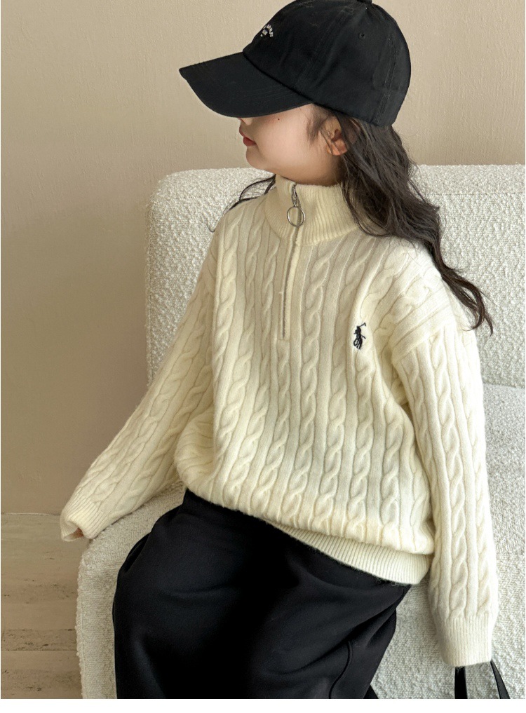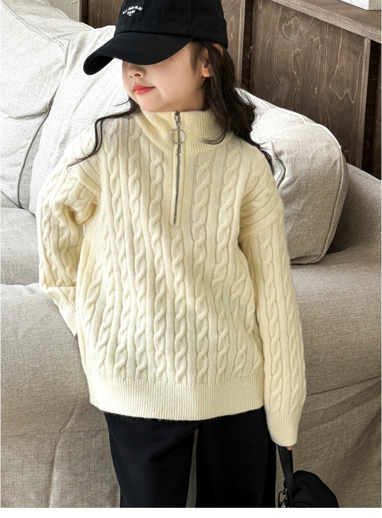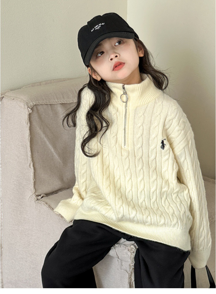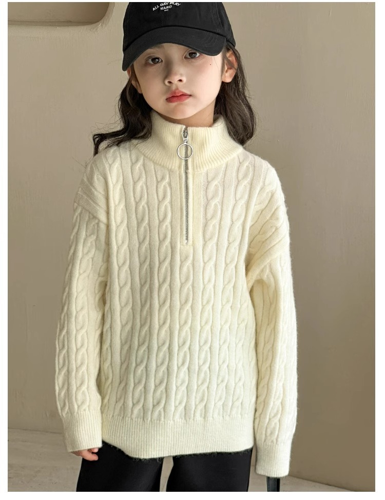 여아용 스웨터 2025 가을 겨울 신상 두꺼운 어린이 니트웨어 울 혼방 중대형 어린이용 루즈핏 캐주얼 상의스토어 가기