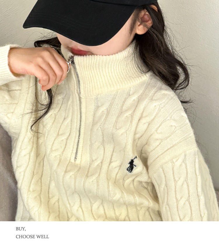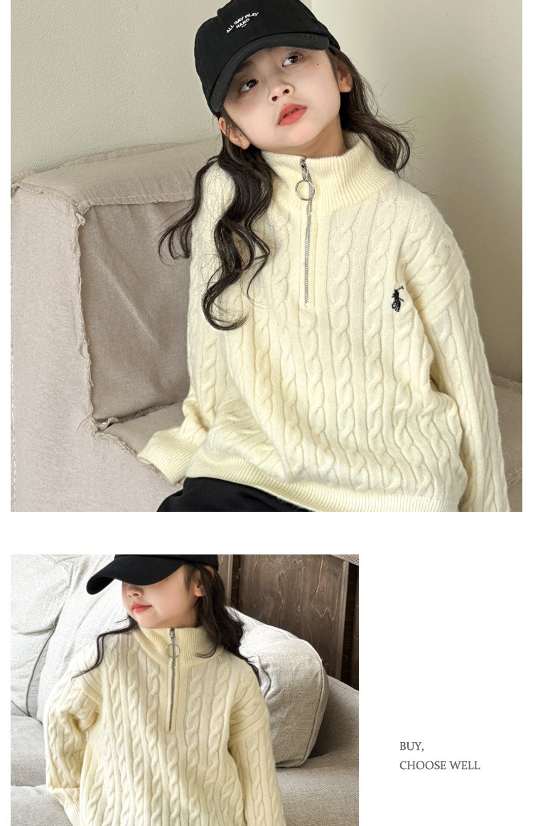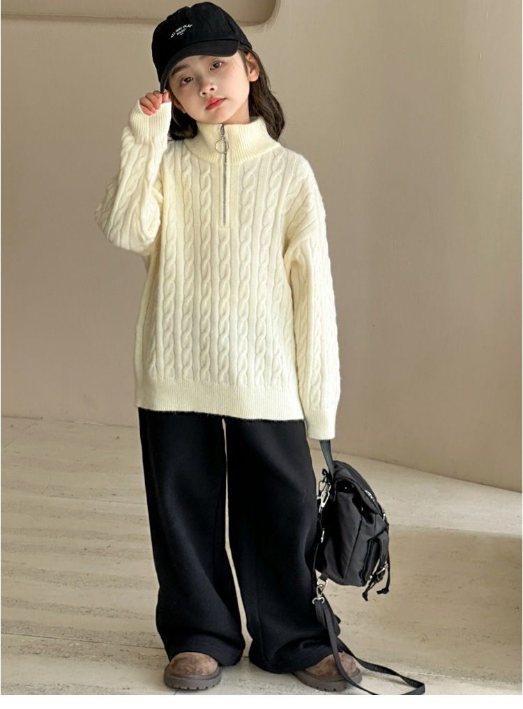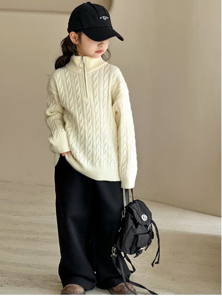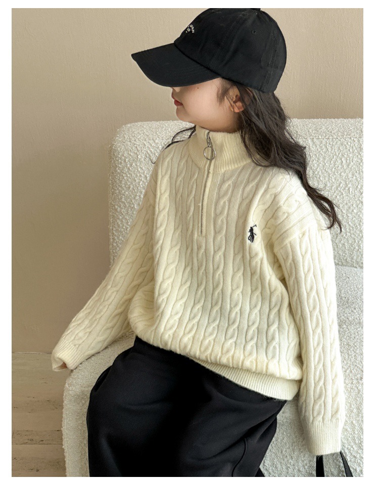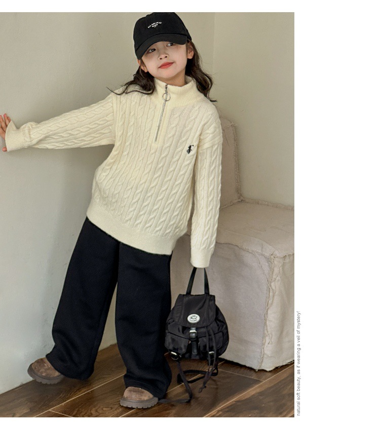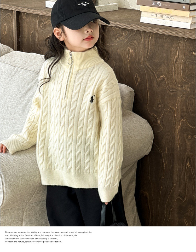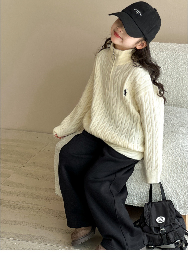 여아용 스웨터 2025 가을 겨울 신상 두꺼운 어린이 니트웨어 울 혼방 중대형 어린이용 루즈핏 캐주얼 상의스토어 가기