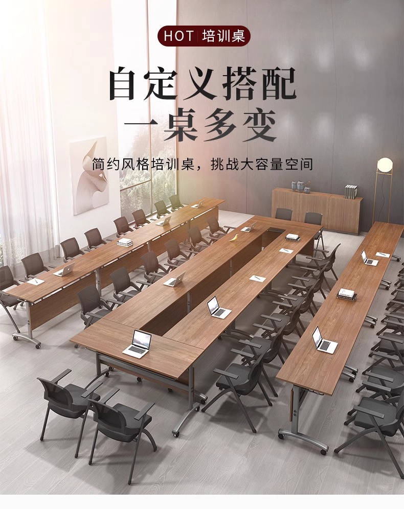 접이식 교육 테이블과 의자 조합 움직일 수있는 긴 테이블 분할 가능한 회의 테이블 과외 수업 교육 기관 책상