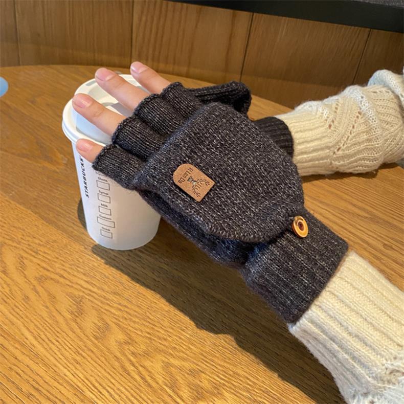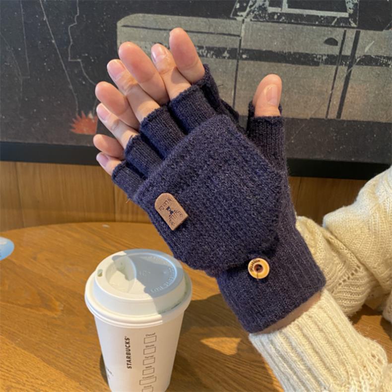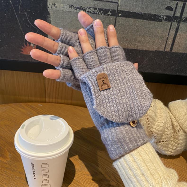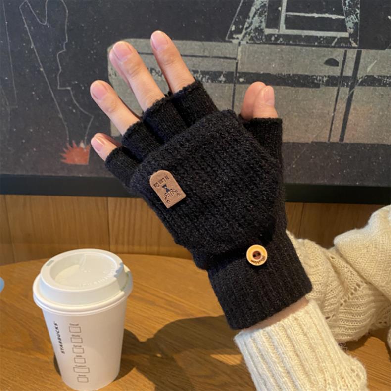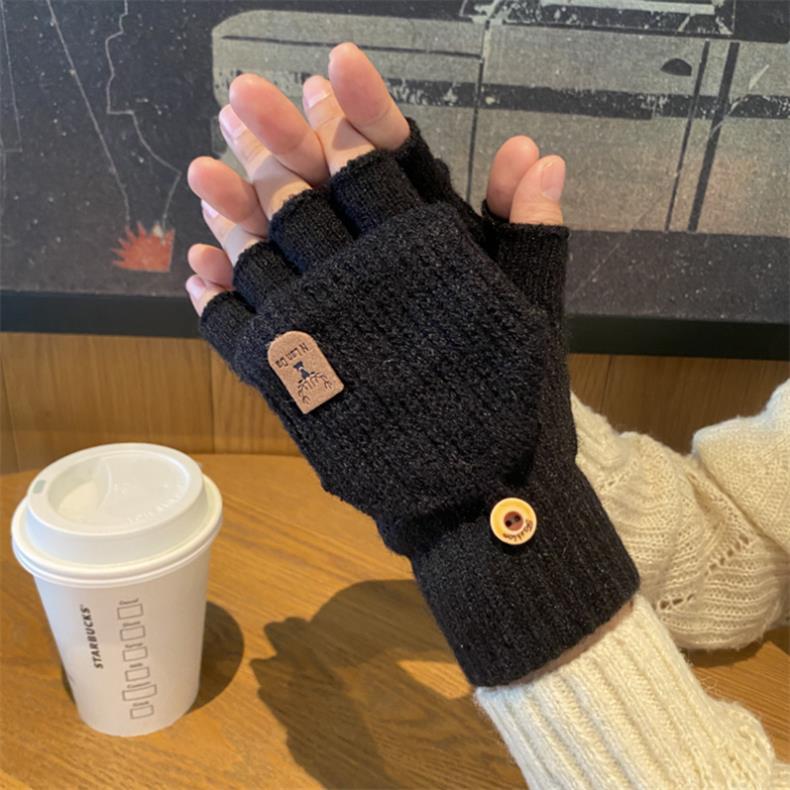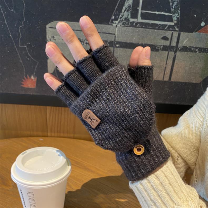 새로운 한국 스타일 장갑 남자 겨울 반 손가락 학생 전시 손가락 손가락 손가락 가을 겨울 니트 울 플립 라이딩 따뜻한