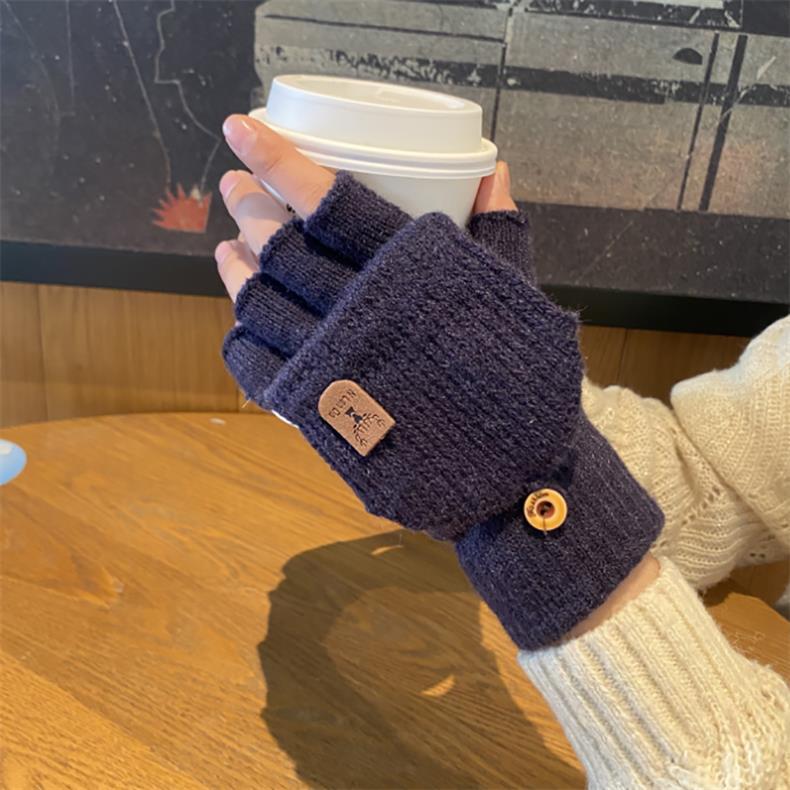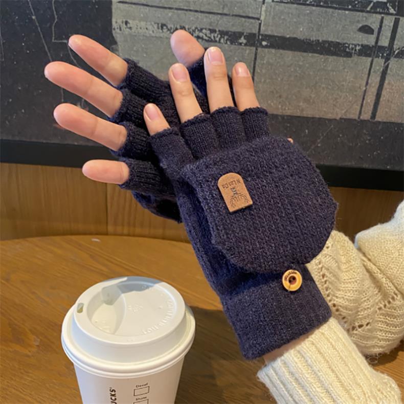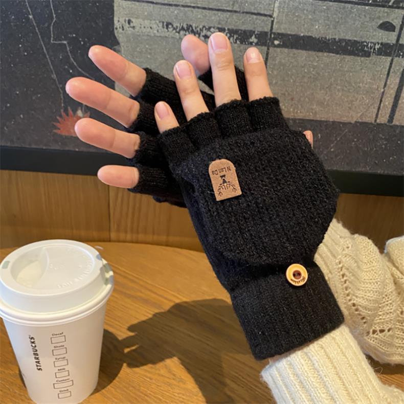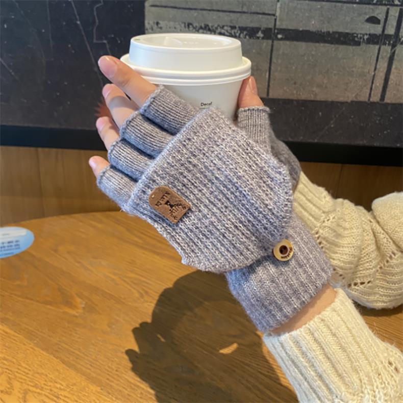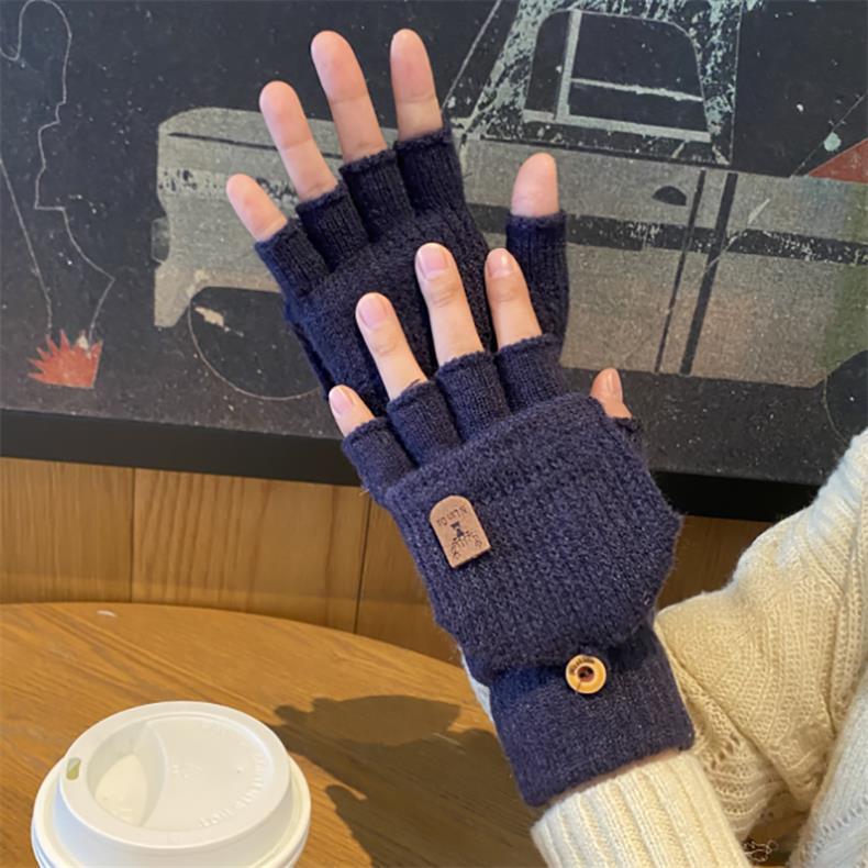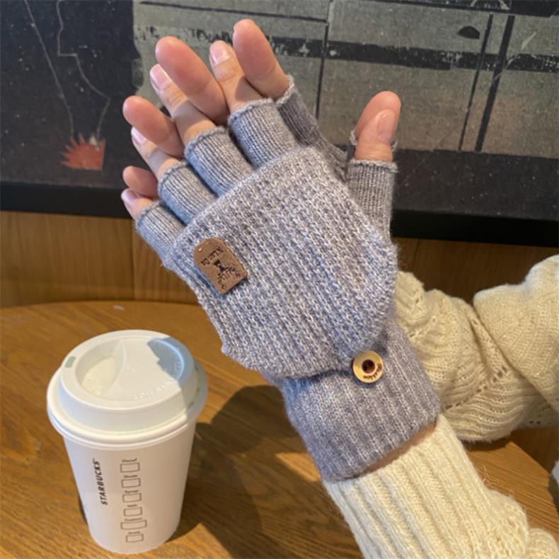 새로운 한국 스타일 장갑 남자 겨울 반 손가락 학생 전시 손가락 손가락 손가락 가을 겨울 니트 울 플립 라이딩 따뜻한