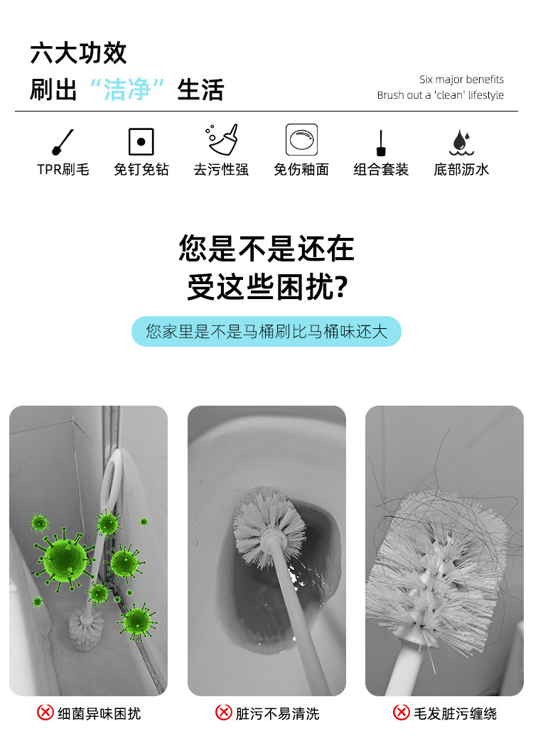 벽에 장착 된 화장실 브러시 화장실 화장실 없음 죽은 각도 청소 브러시 긴 손잡이 기본 화장실 브러시 조합 세트스토어 가기