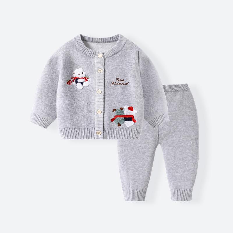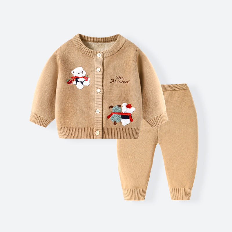 아기의 세트 가을과 겨울 니트 카디건 세트 아기의 따뜻한 옷 스웨터 겨울 옷 어린이 울 세트