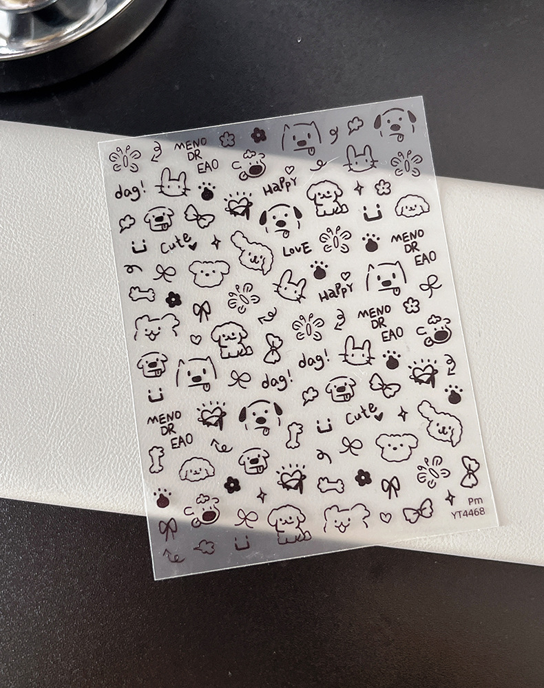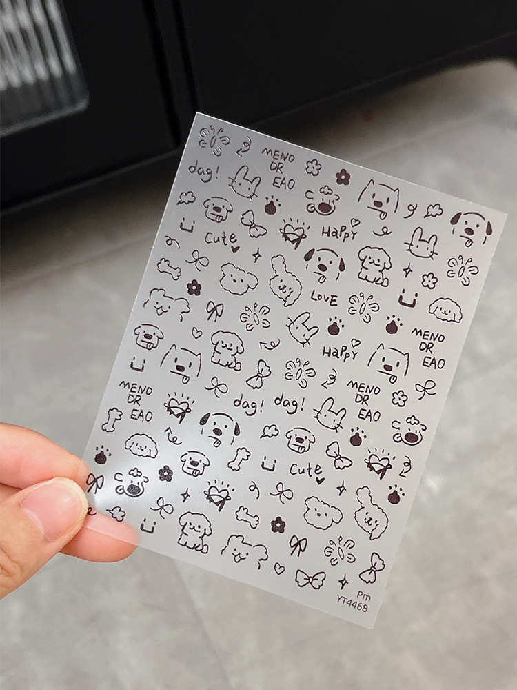 YITU 개미 그림 평면 만화 네일 아트 스티커 활 꽃 검은 색과 흰색 접착제 네일 장식 스티커 YT4468