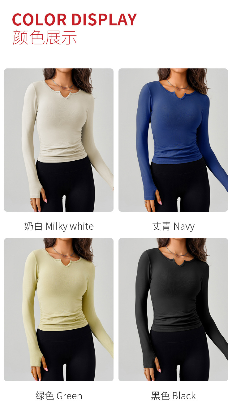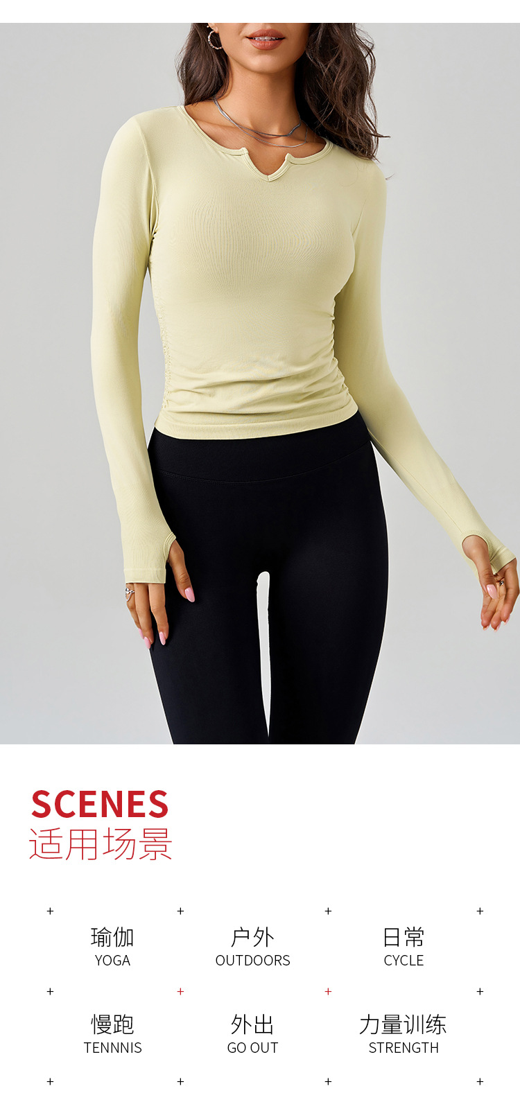 와튼 가을과 겨울 피트니스 탑 여성용 긴팔 슬림 핏 슬리밍 사이드 주름 빠른 건조 스포츠 편안한 요가 옷 여성용 긴팔스토어 가기