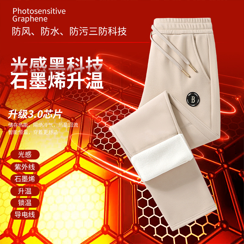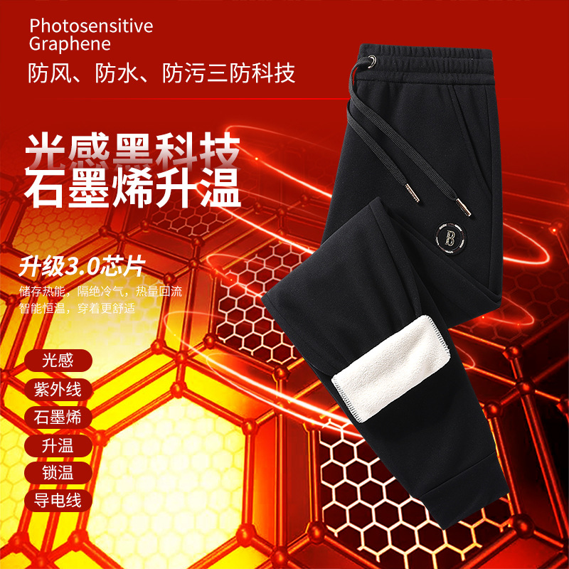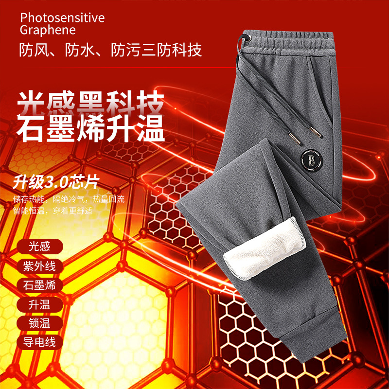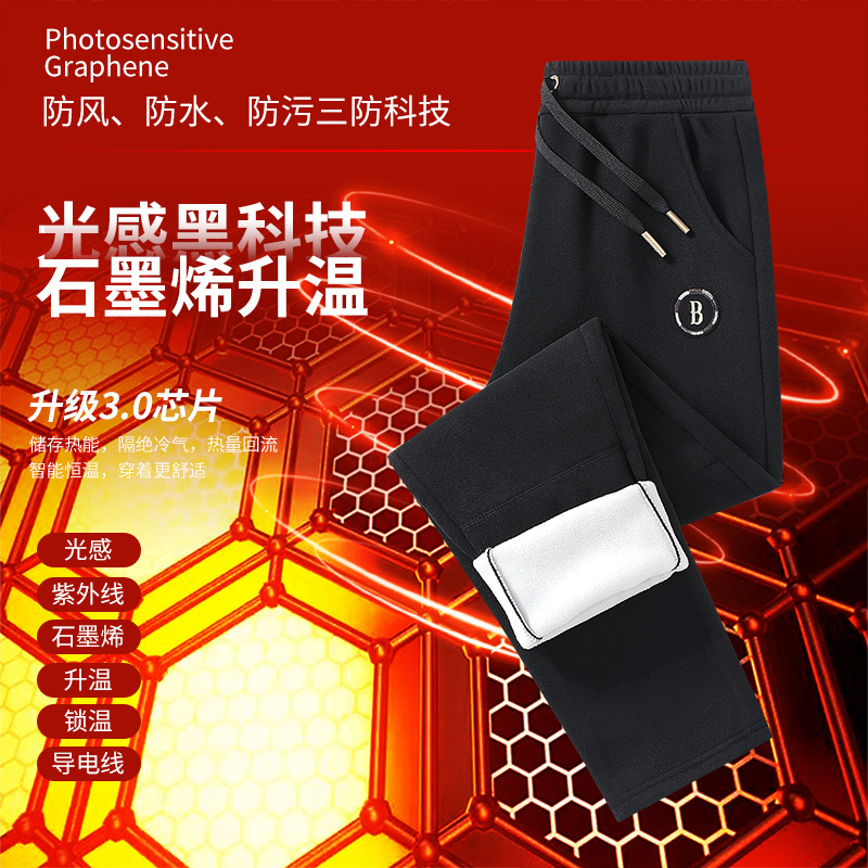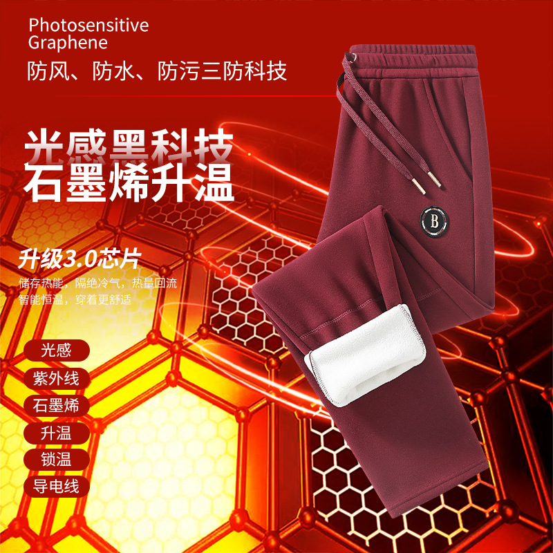 빛에 민감한 그래 핀 따뜻한 잠긴 면화 바지 남녀 스포츠 레저 셀프 가열 무릎 바지 기모 두꺼운 3 가지 증거 캐주얼 바지