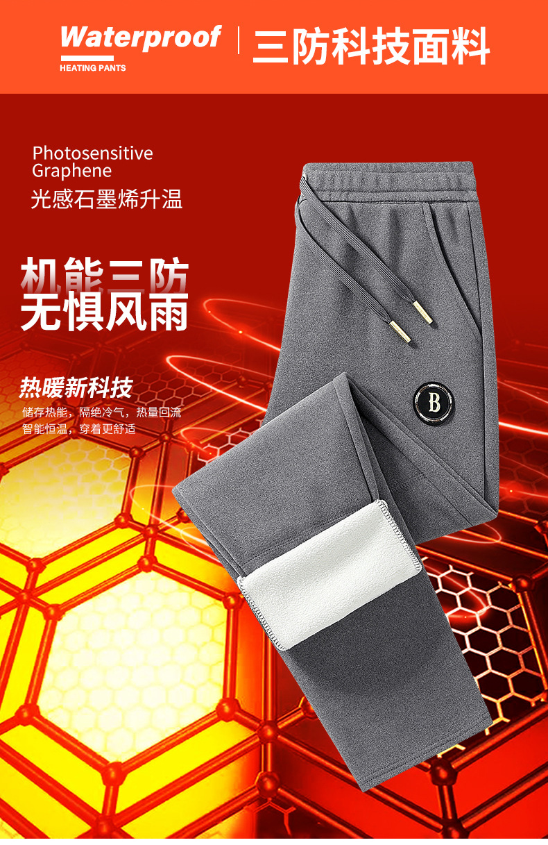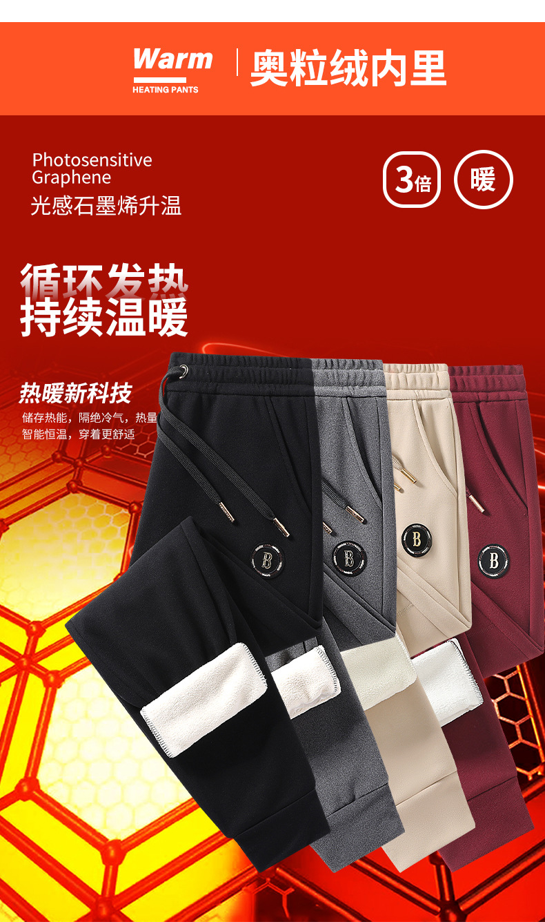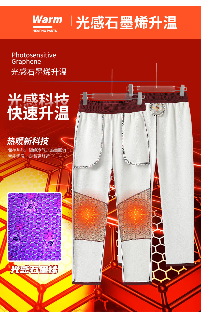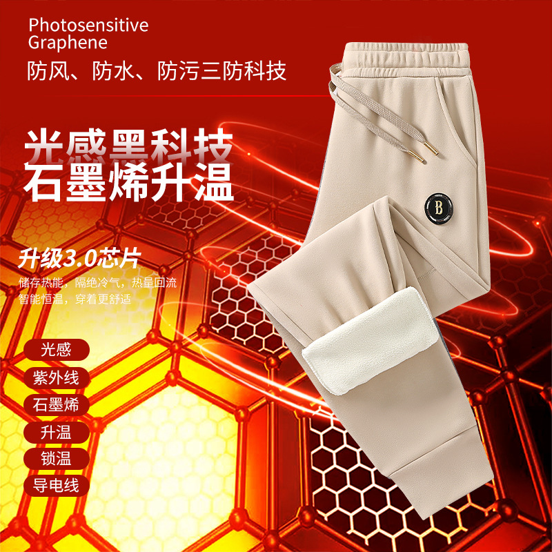빛에 민감한 그래 핀 따뜻한 잠긴 면화 바지 남녀 스포츠 레저 셀프 가열 무릎 바지 기모 두꺼운 3 가지 증거 캐주얼 바지