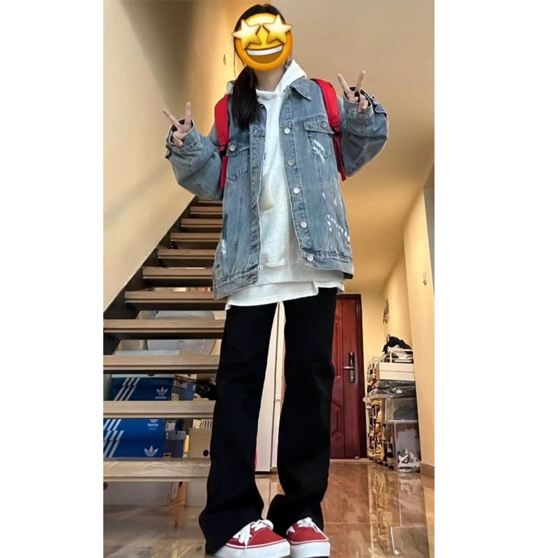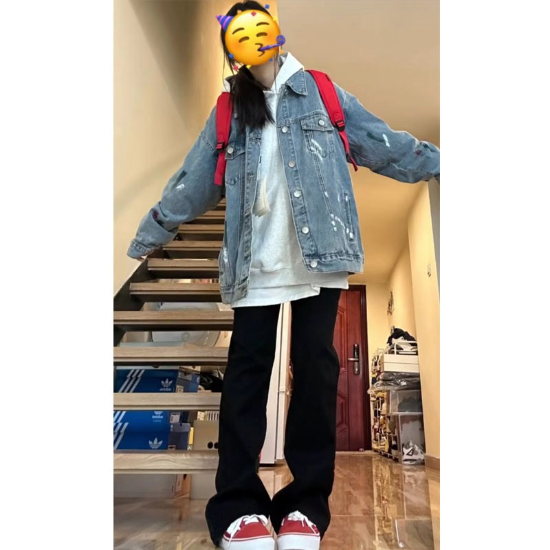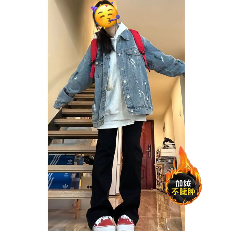 봄과 가을 좁은 넓은 다리 청바지 여자 키 큰 올매치 블랙 하이 허리 스트레이트 올 매치 슬림 핏 스트레치 연기 튜브 바지스토어 가기