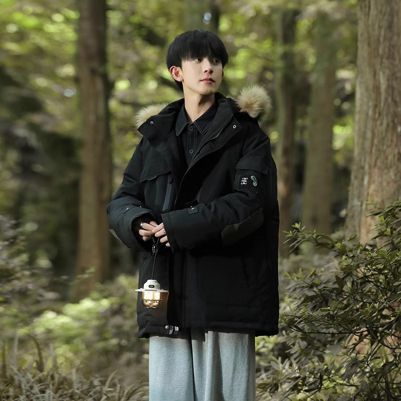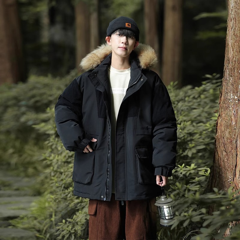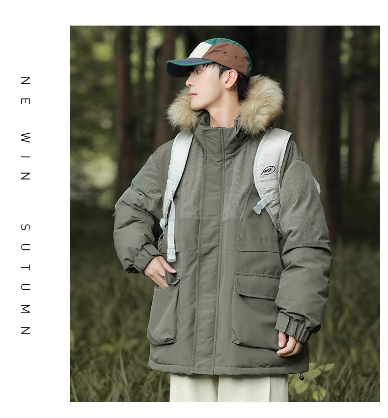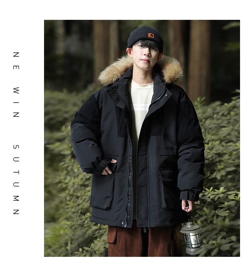 NASA Parker 코튼 패딩 코트 남자 겨울 2024 느슨한 캐주얼 두꺼운 따뜻한 울 칼라 코튼 패딩 코트 분리 가능한 모자 재킷스토어 가기