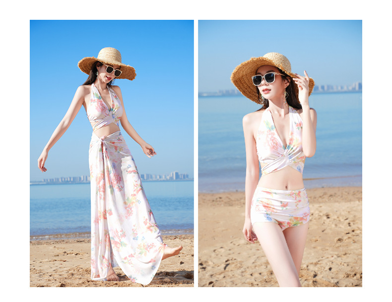 2024 새로운 분할 3 피스 수영복 여성 비키니 비키니 해변 슬리밍 섹시한 하이 엔드