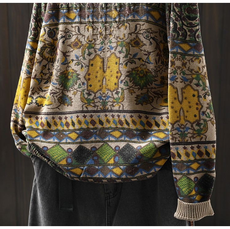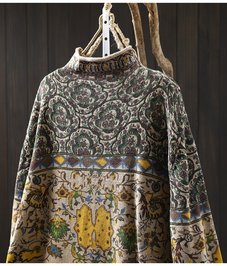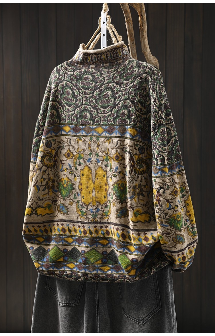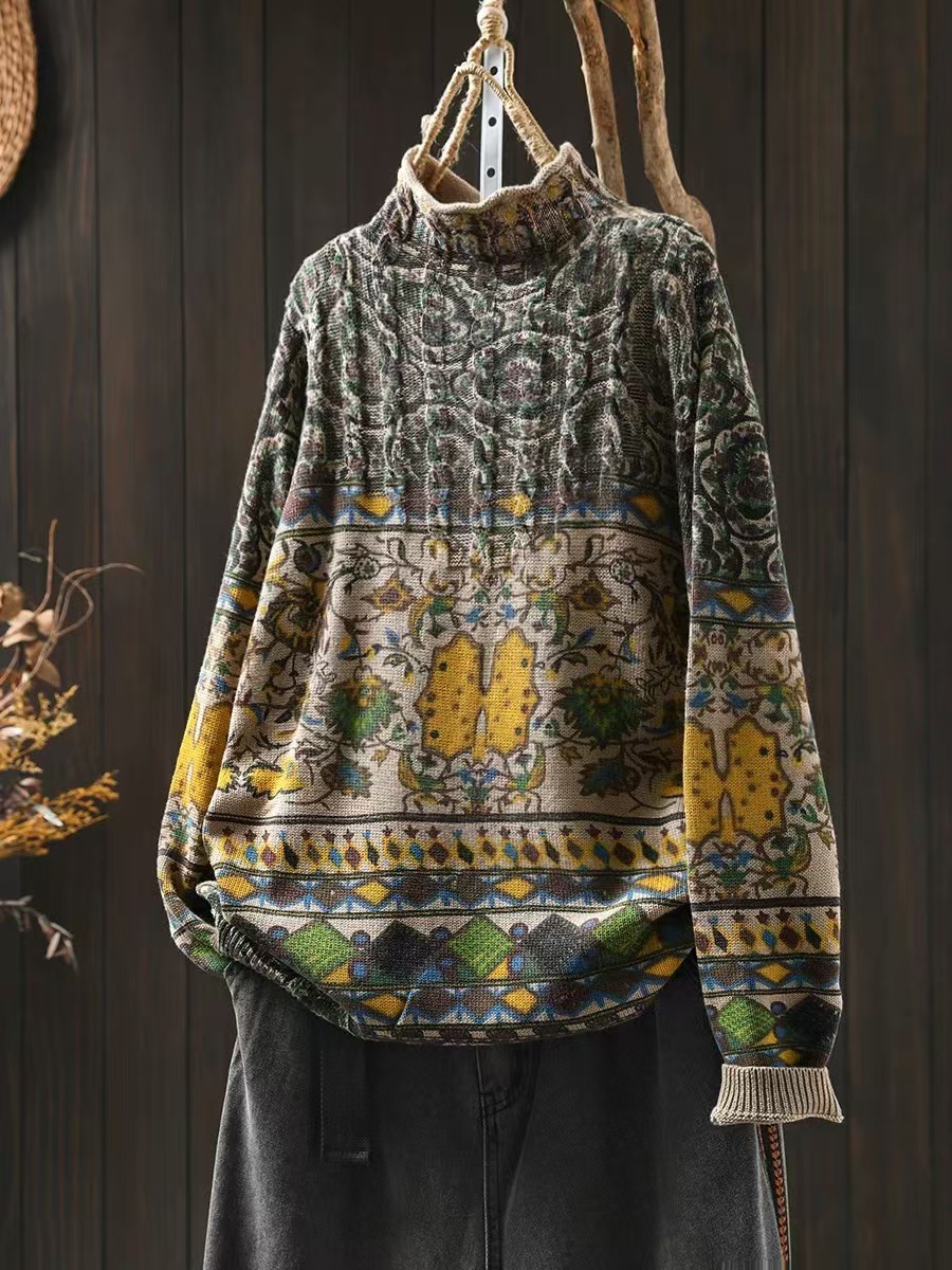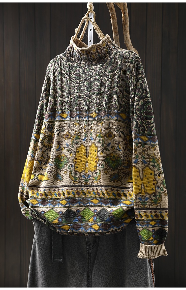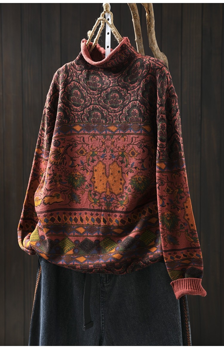 겨울 새로운 반 터틀넥 인쇄 면 스웨터 여성의 느슨한 슬리밍 빈티지 쿨 캐주얼 풀오버 82513
