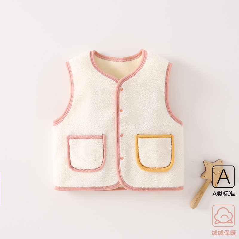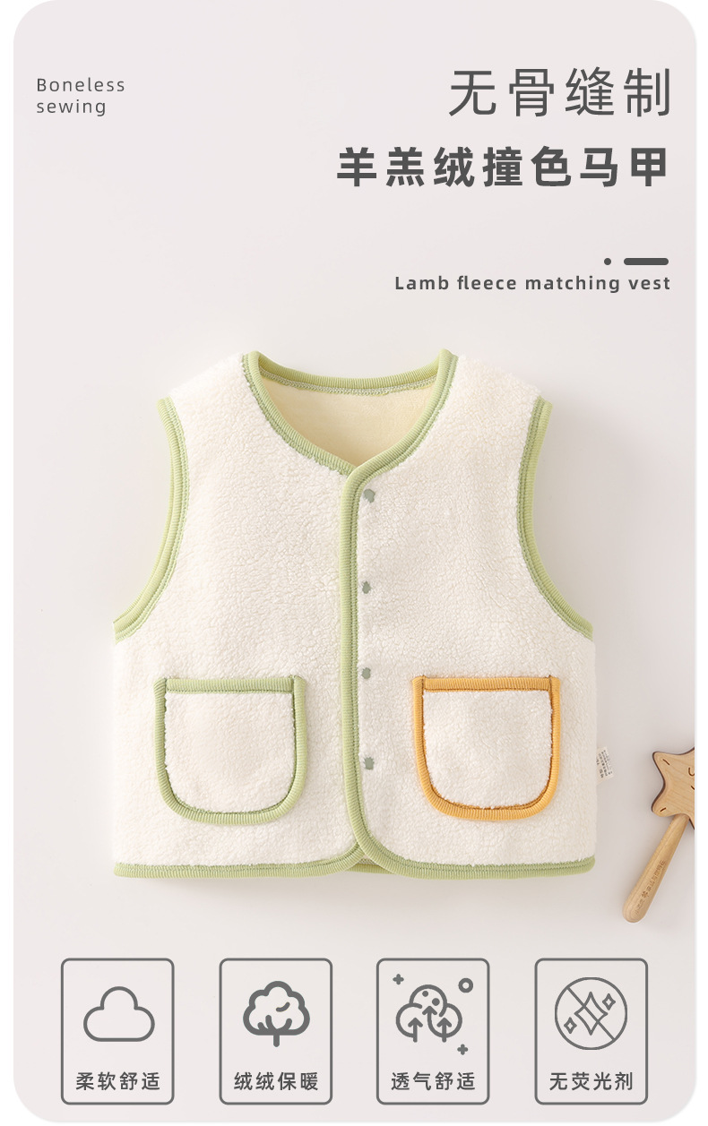 어린이 소년 양고기 벨벳 조끼 2024 새로운 가을과 겨울 외장 착용 유행 두꺼운 기모 따뜻한 여자 조끼스토어 가기