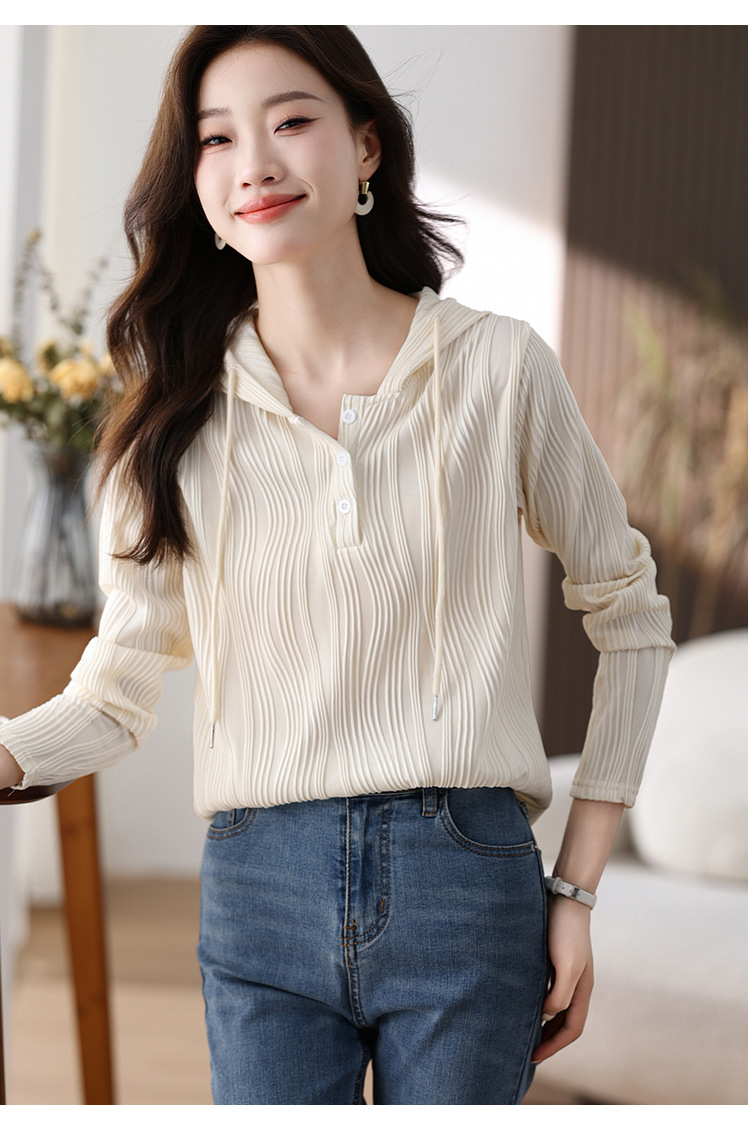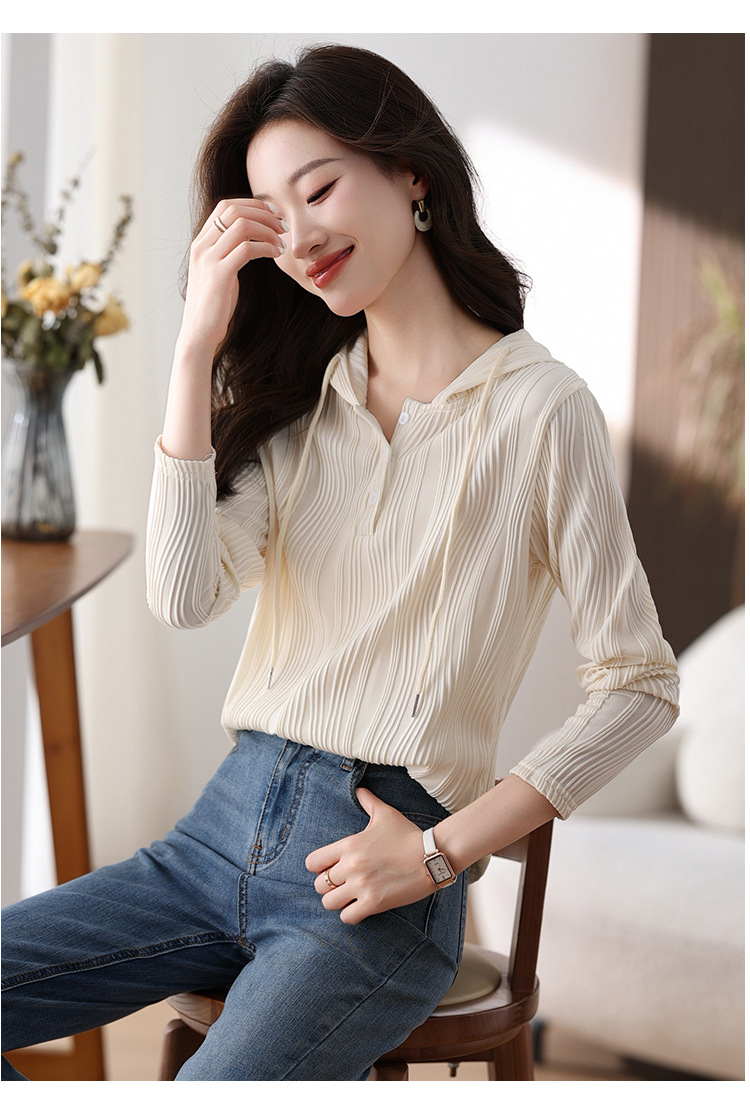 질감 긴 소매 2023 가을 새로운 패션 디자인 기질 빛 티셔츠 여성스토어 가기