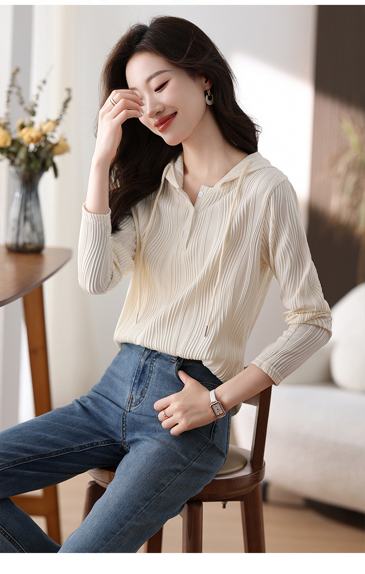 질감 긴 소매 2023 가을 새로운 패션 디자인 기질 빛 티셔츠 여성