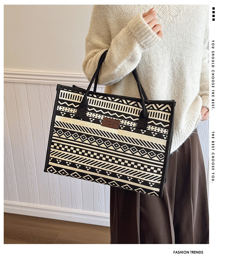 민족 스타일 대용량 토트 백 패션 인쇄 된 어깨 가방 통근 작업 휴대용 큰 가방 미라 가방