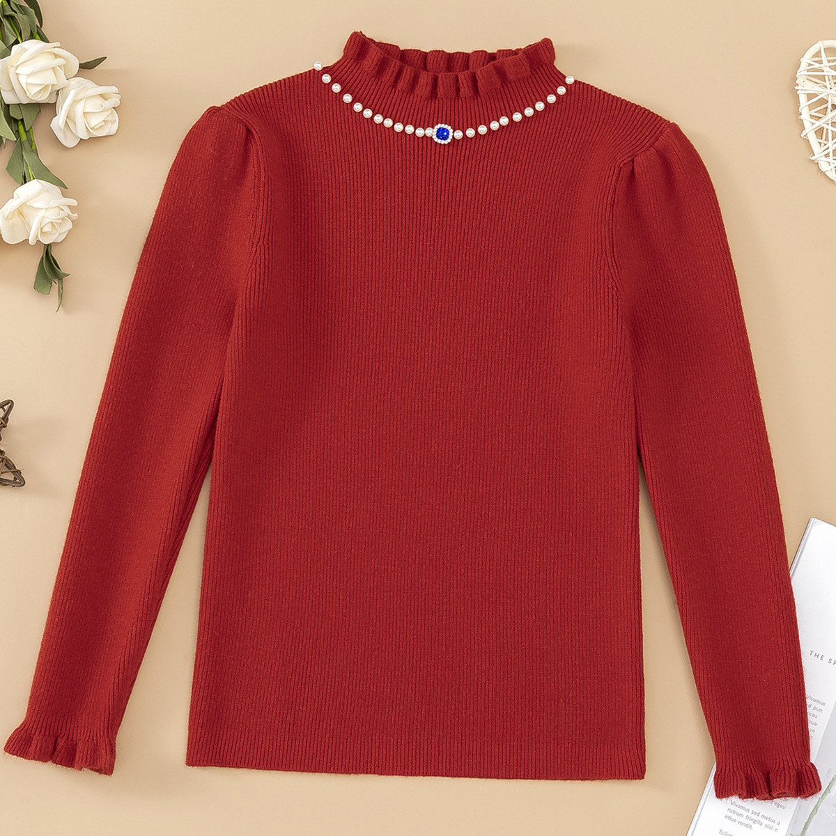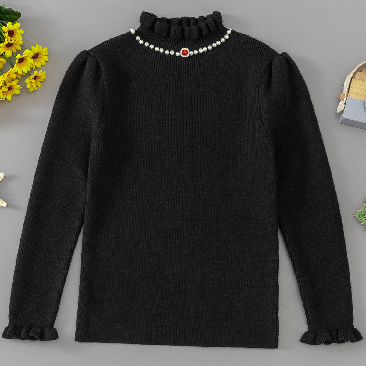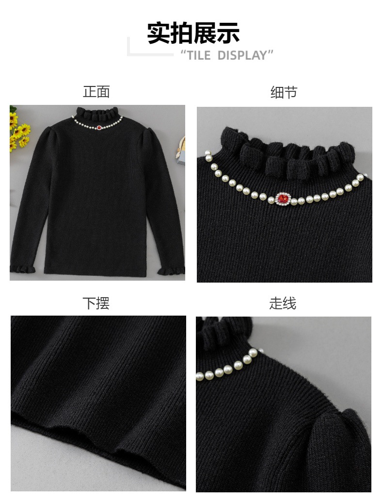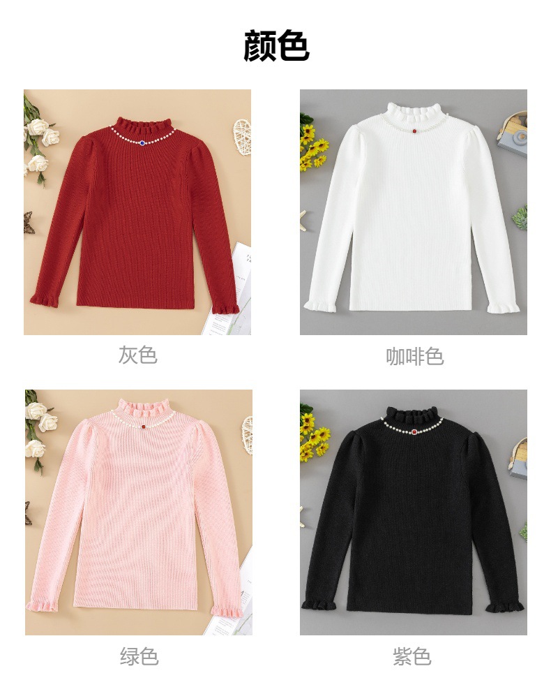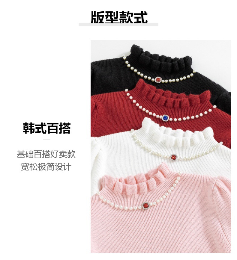 소녀베이스 셔츠 가을과 겨울 새로운 서양식 어린이 봄 및 가을 반 터틀넥 스웨터 중 큰 어린이 니트웨어 겨울복스토어 가기