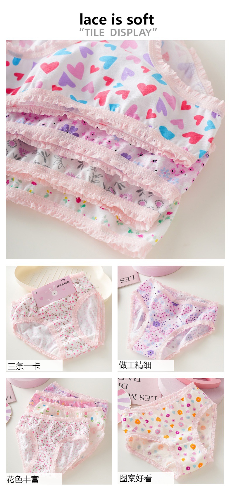 공장 도매 국경 간 대외 무역 어린이 속옷 레이스 여자 꽃 브리프 면화 다채로운 판지스토어 가기