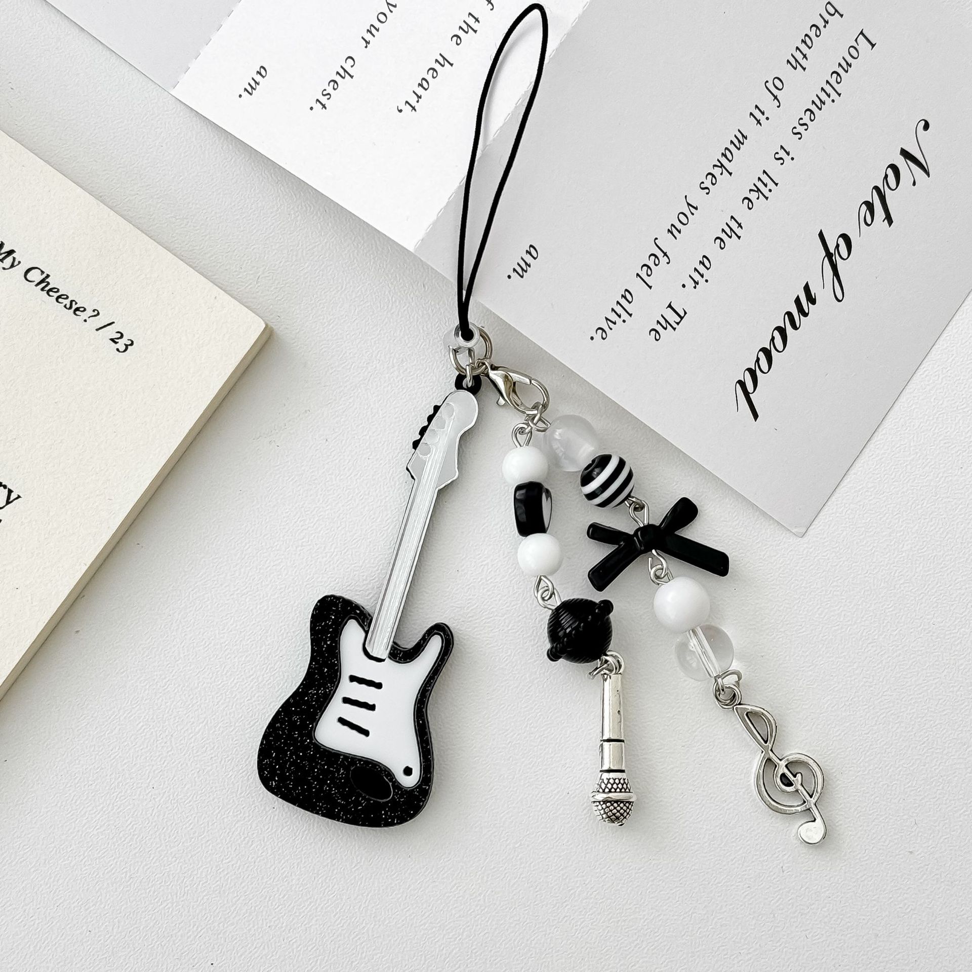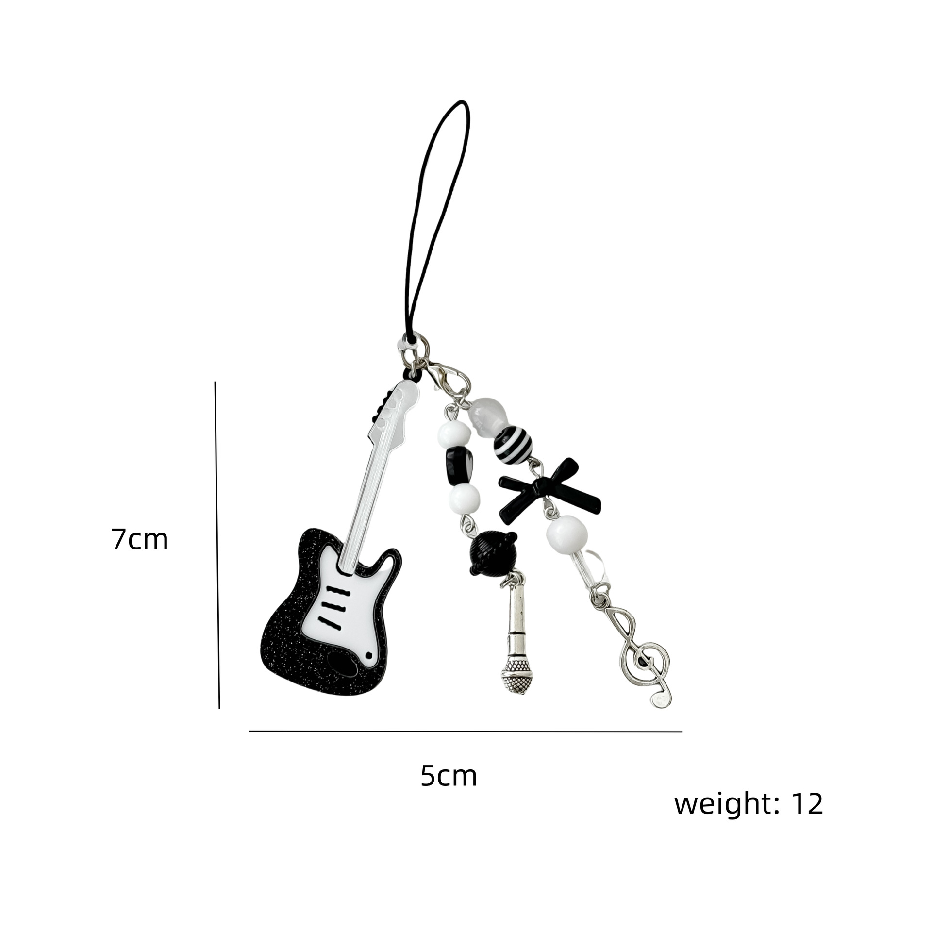 포인트 컬러 원래 흑백 기타 y2k 휴대 전화 펜던트 키 체인 맞춤형 구슬 가방 교수형 장식품 교수형 체인