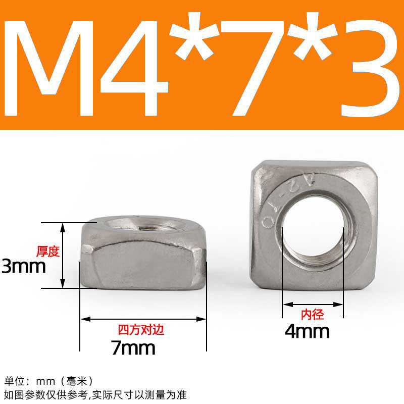 • M4*7*3 (50개) [사각너트]