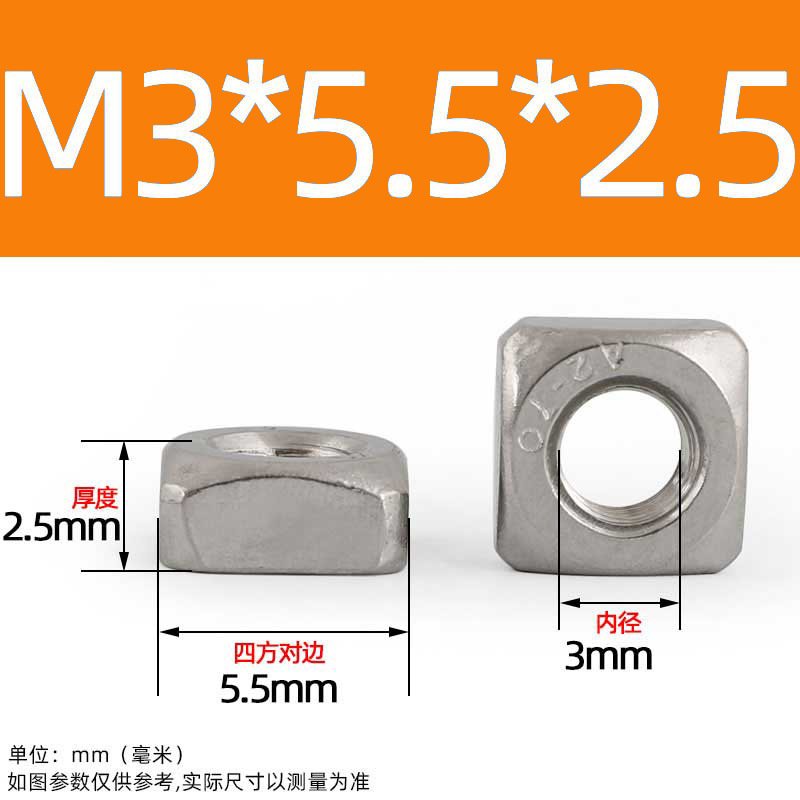• M3*5.5*2.5(100개) [사각너트]