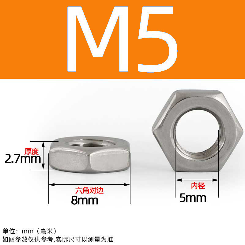 • M5(100개) 두께 2.7mm [얇은 육각너트]