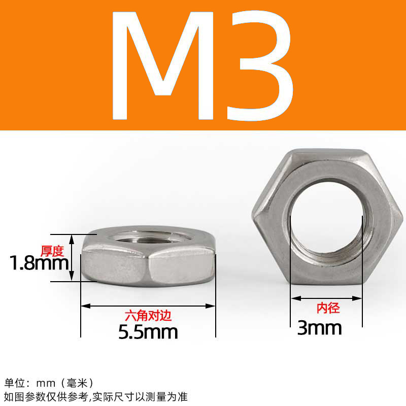 • M3(100개) 두께 1.8mm [얇은 육각너트]