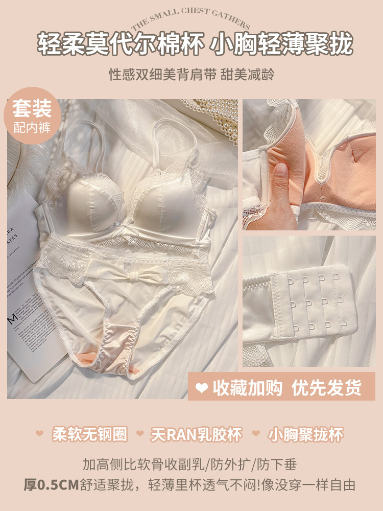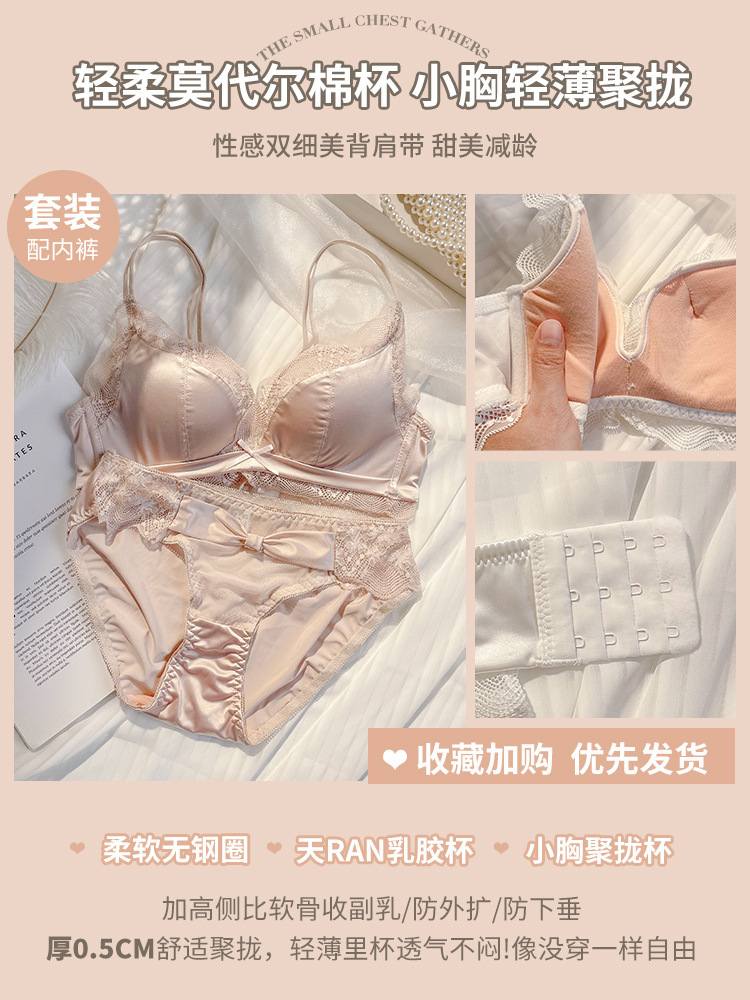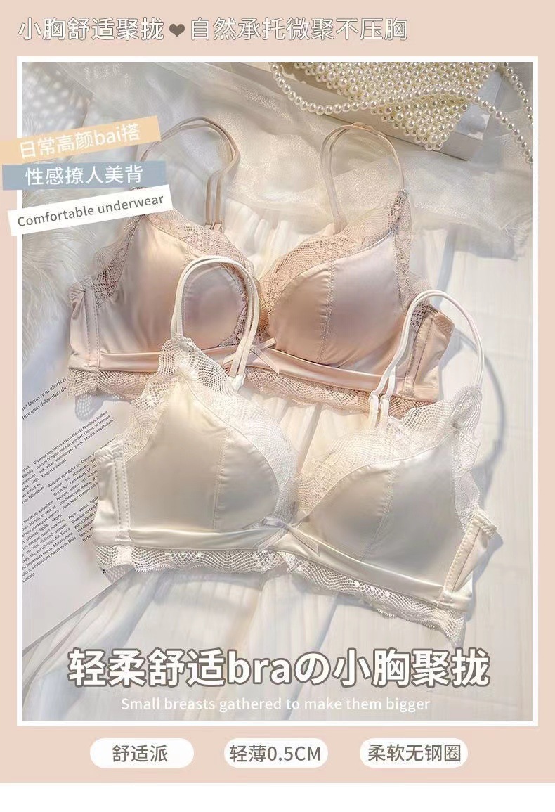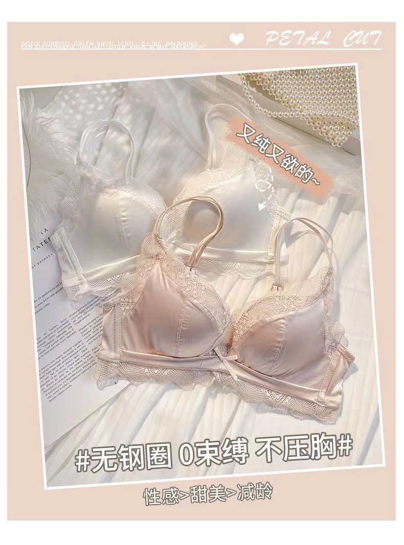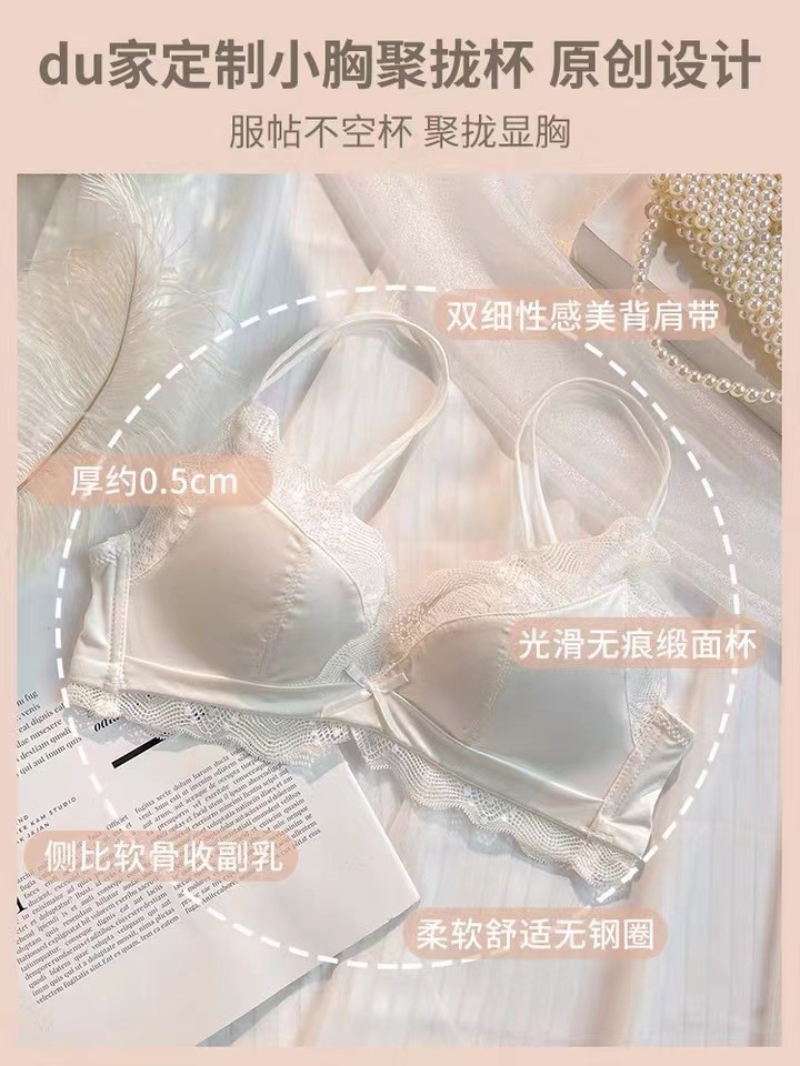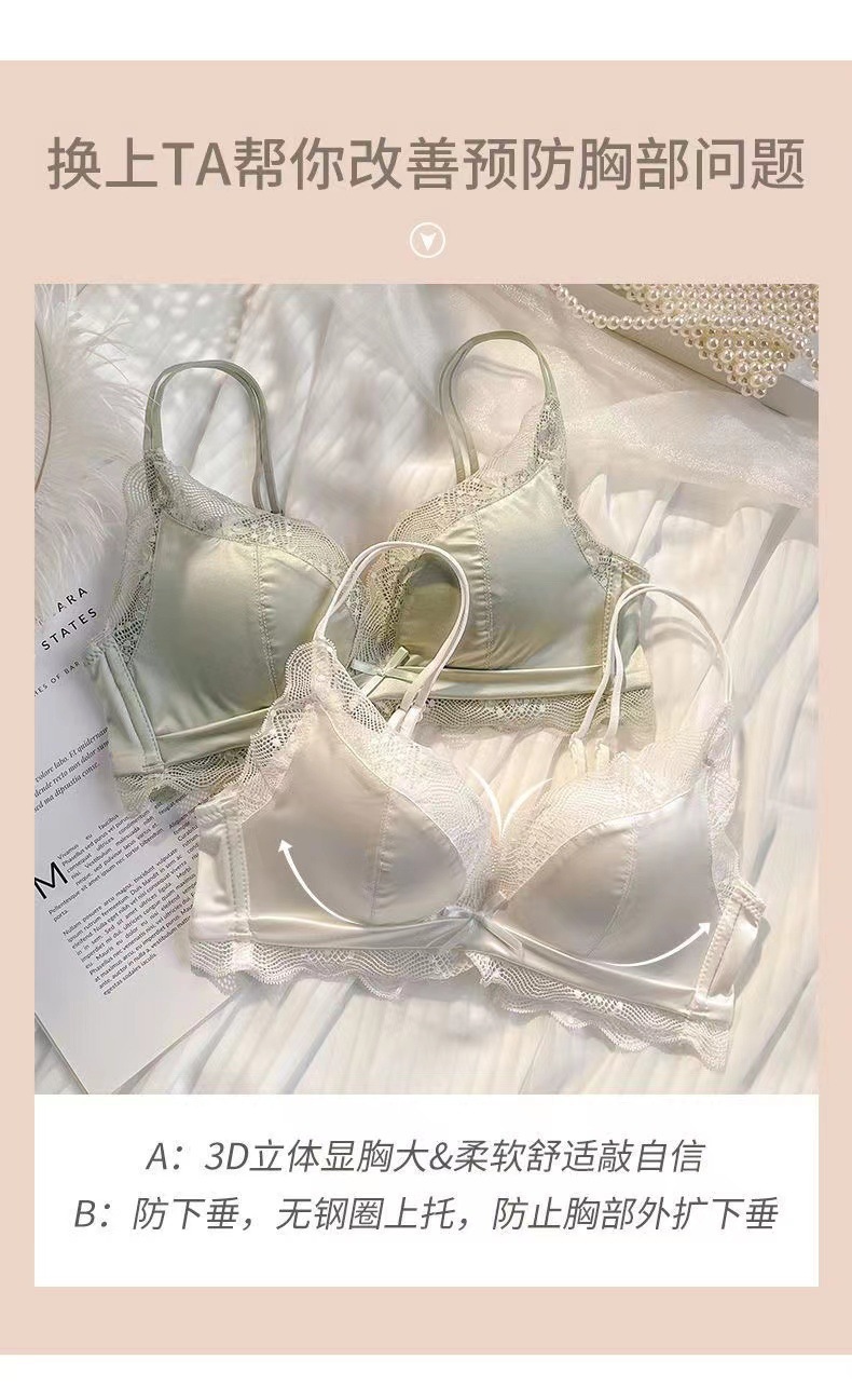 Traceless Satin 속옷 여성의 작은 가슴 큰 푸시 업 퓨어 원함 푸시 업 Rimless Latex Sexy Bra Beautiful Back스토어 가기