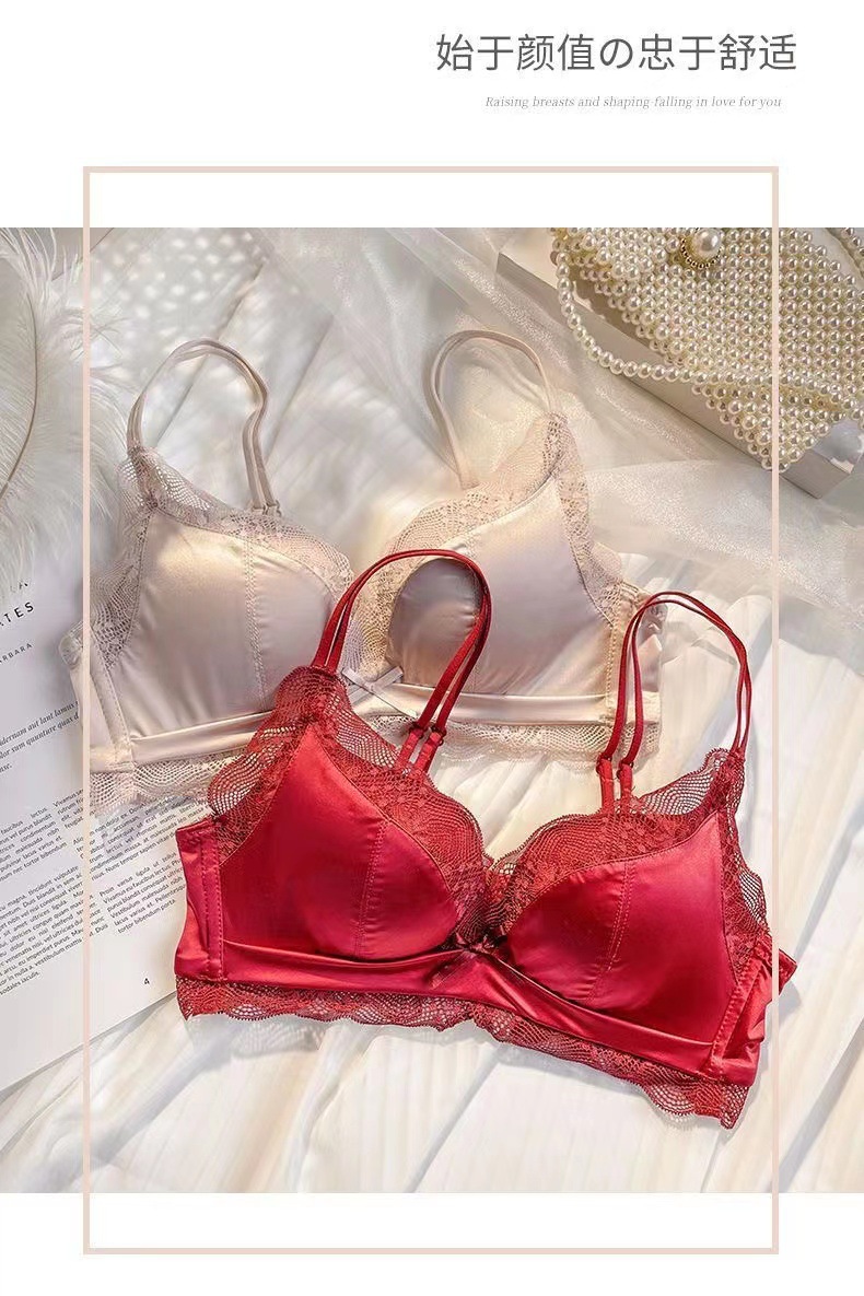 Traceless Satin 속옷 여성의 작은 가슴 큰 푸시 업 퓨어 원함 푸시 업 Rimless Latex Sexy Bra Beautiful Back