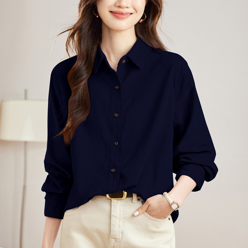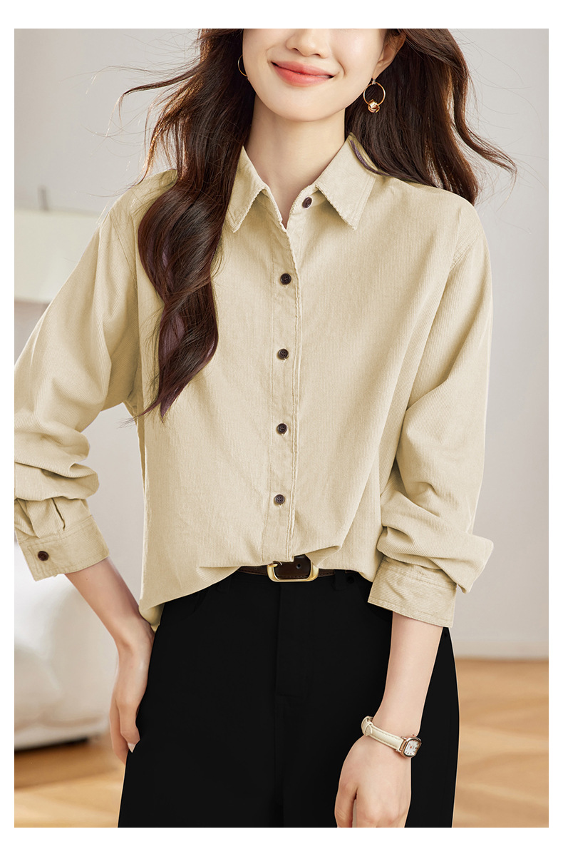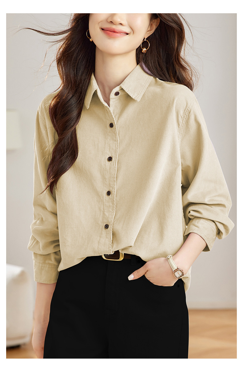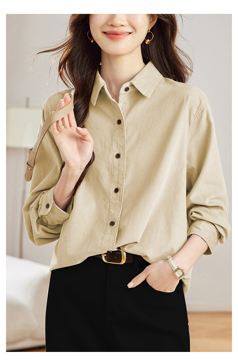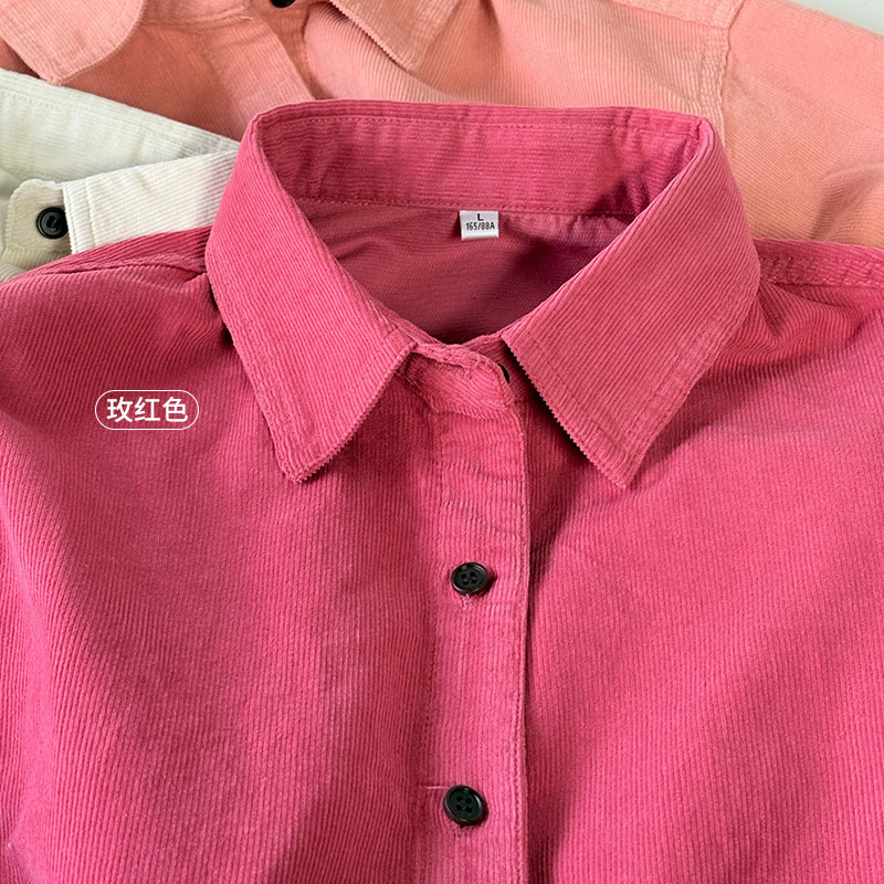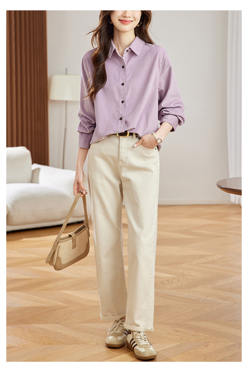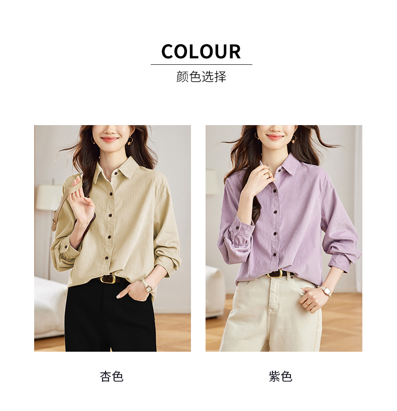 공장 직접 보라색 코듀로이 셔츠 긴 소매 2025 봄 새로운 간단한 통근 탑 한국 여성 셔츠